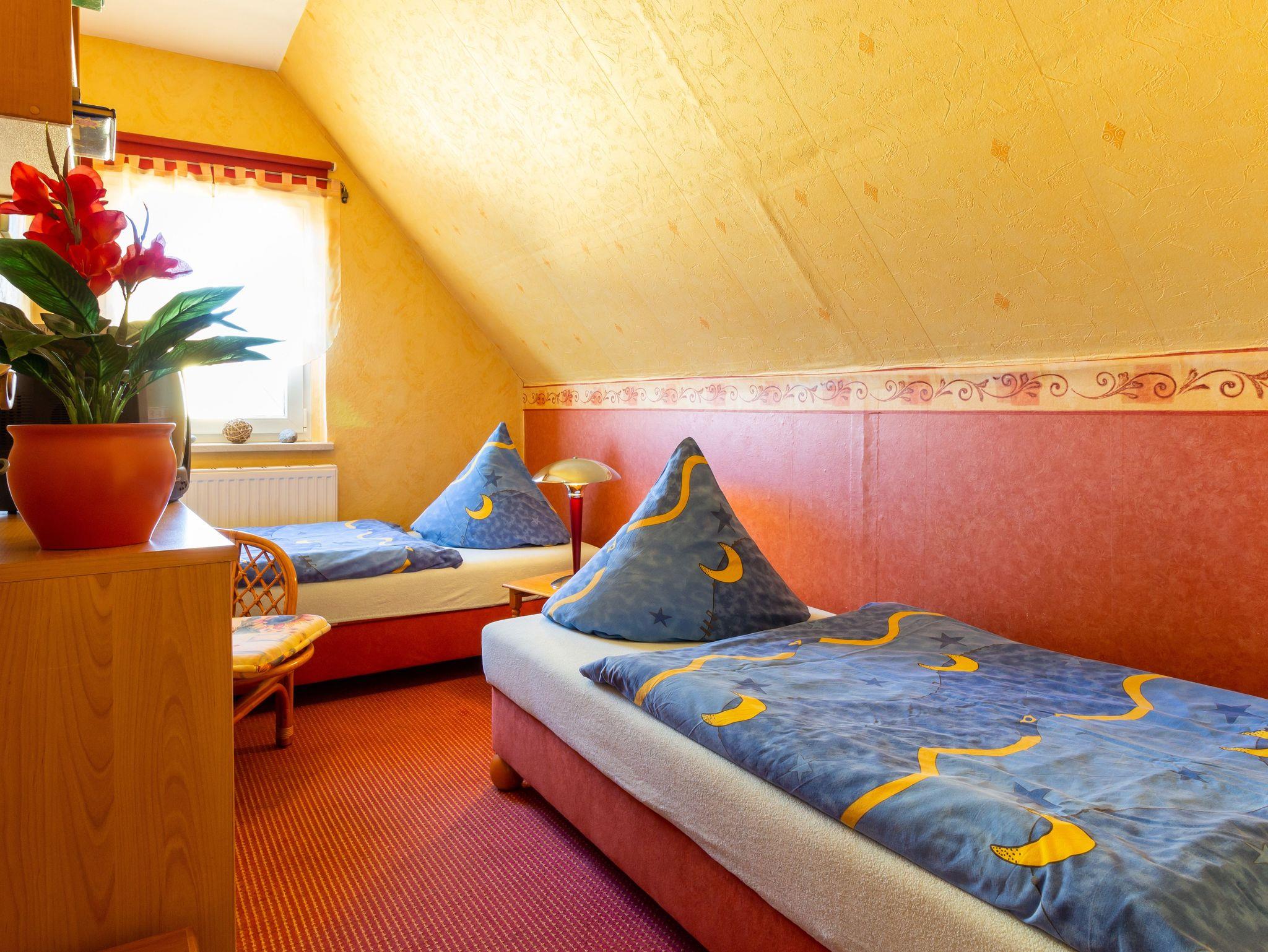 • Kinderschlafzimmer mit zwei Schlafliegen, TV-Gerät und DVD-Player, Vinylboden