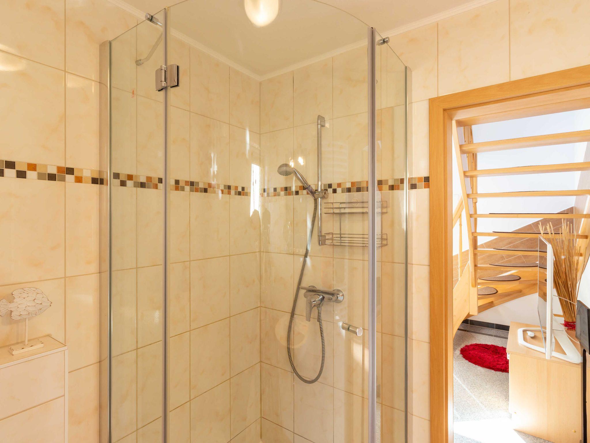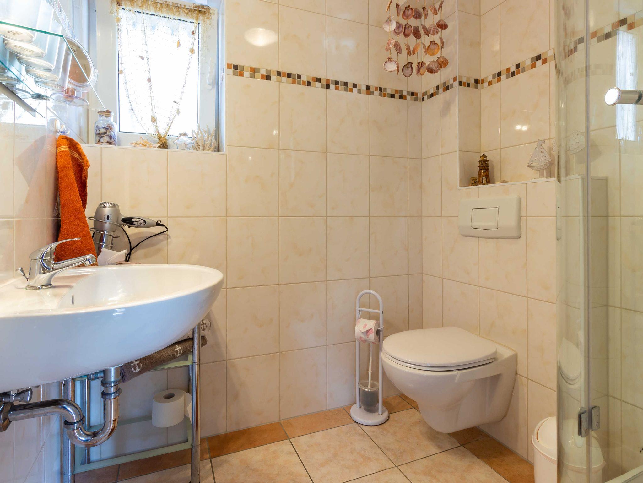 • modern ausgestattetes Badezimmer mit Dusche und WC im Parterre