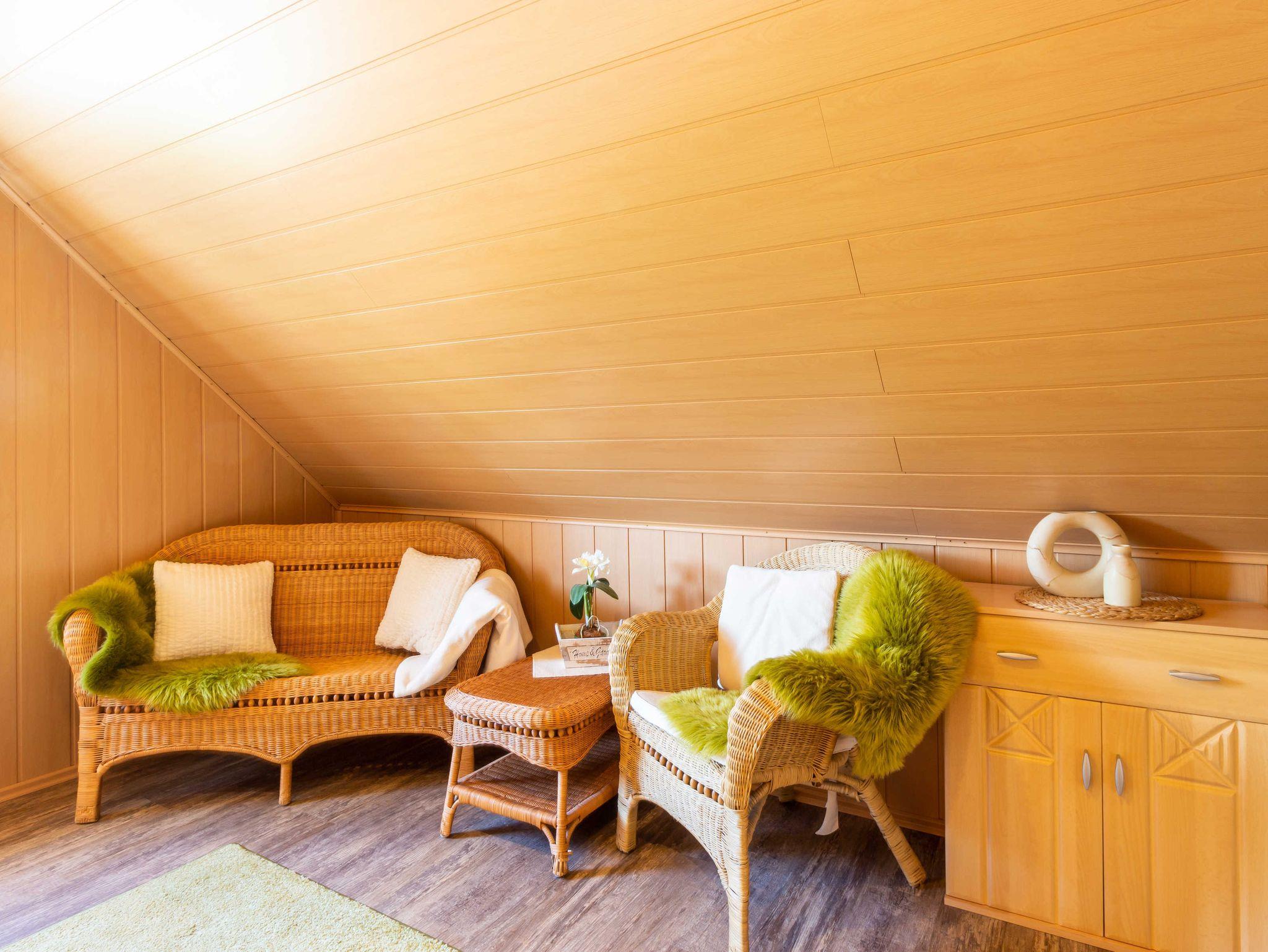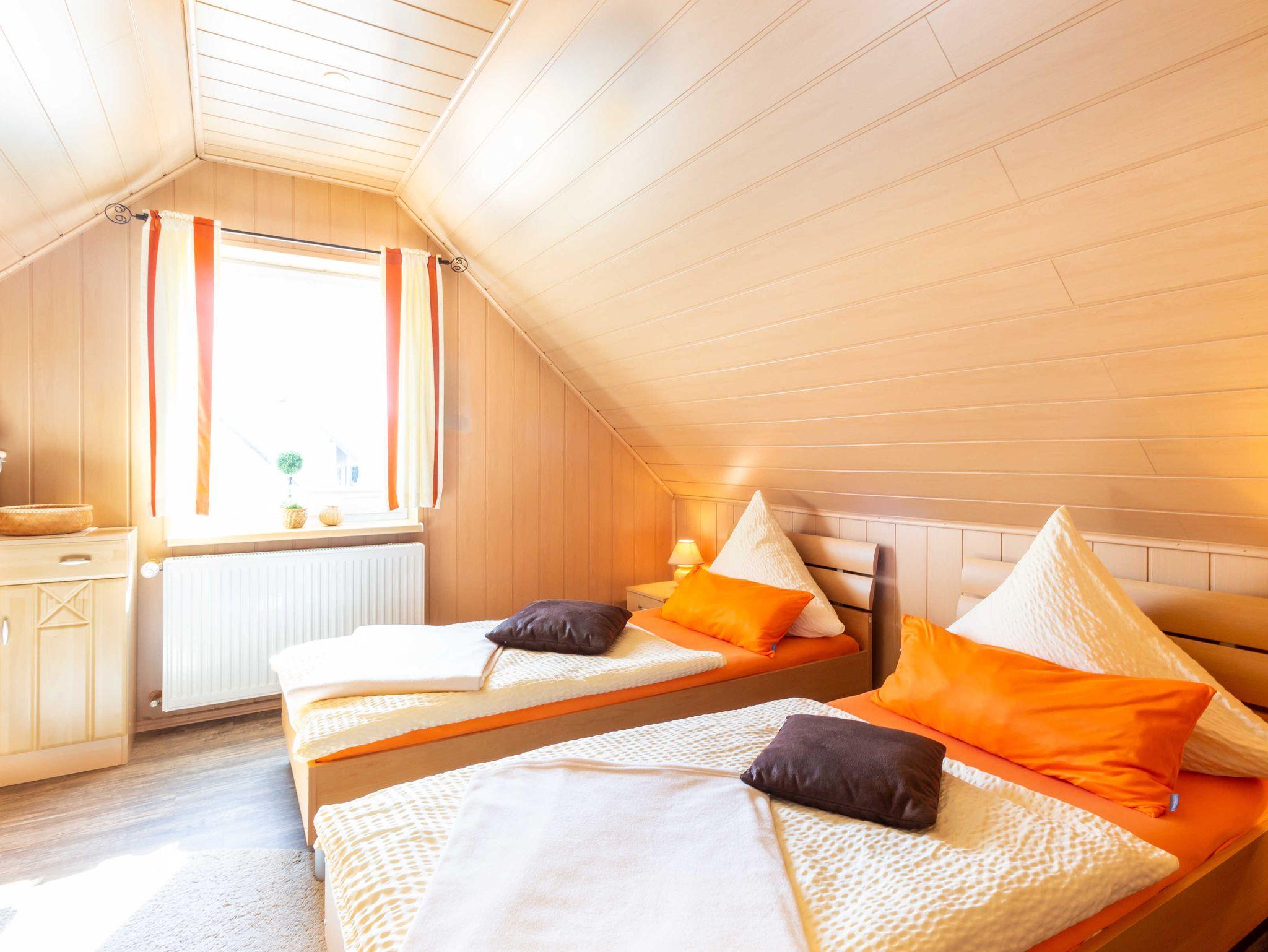 • ein Schlafraum mit drei Einzelbetten (90x200 cm) in der 1. Etage (Dachschrägen)