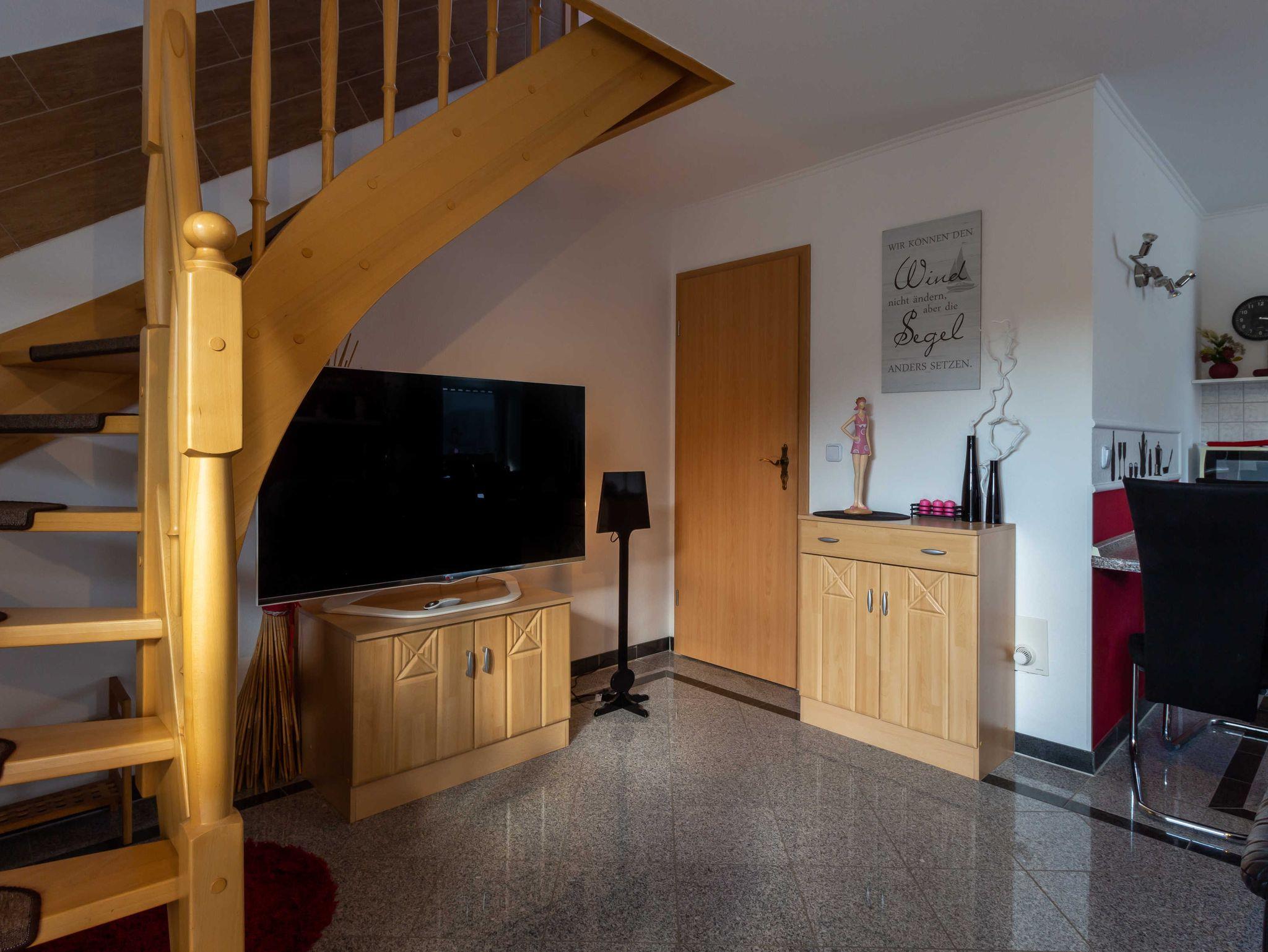Das Appartement (47 m²) erstreckt sich über zwei Etagen. Es wurde komplett neu ausgebaut und ist modern und sehr geschmackvoll eingerichtet. Es gibt zwei separate Schlafzimmer im Obergeschoss. Durch den großen umzäunten Garten ist das Appartement besonders für Familien mit Kindern geeignet.