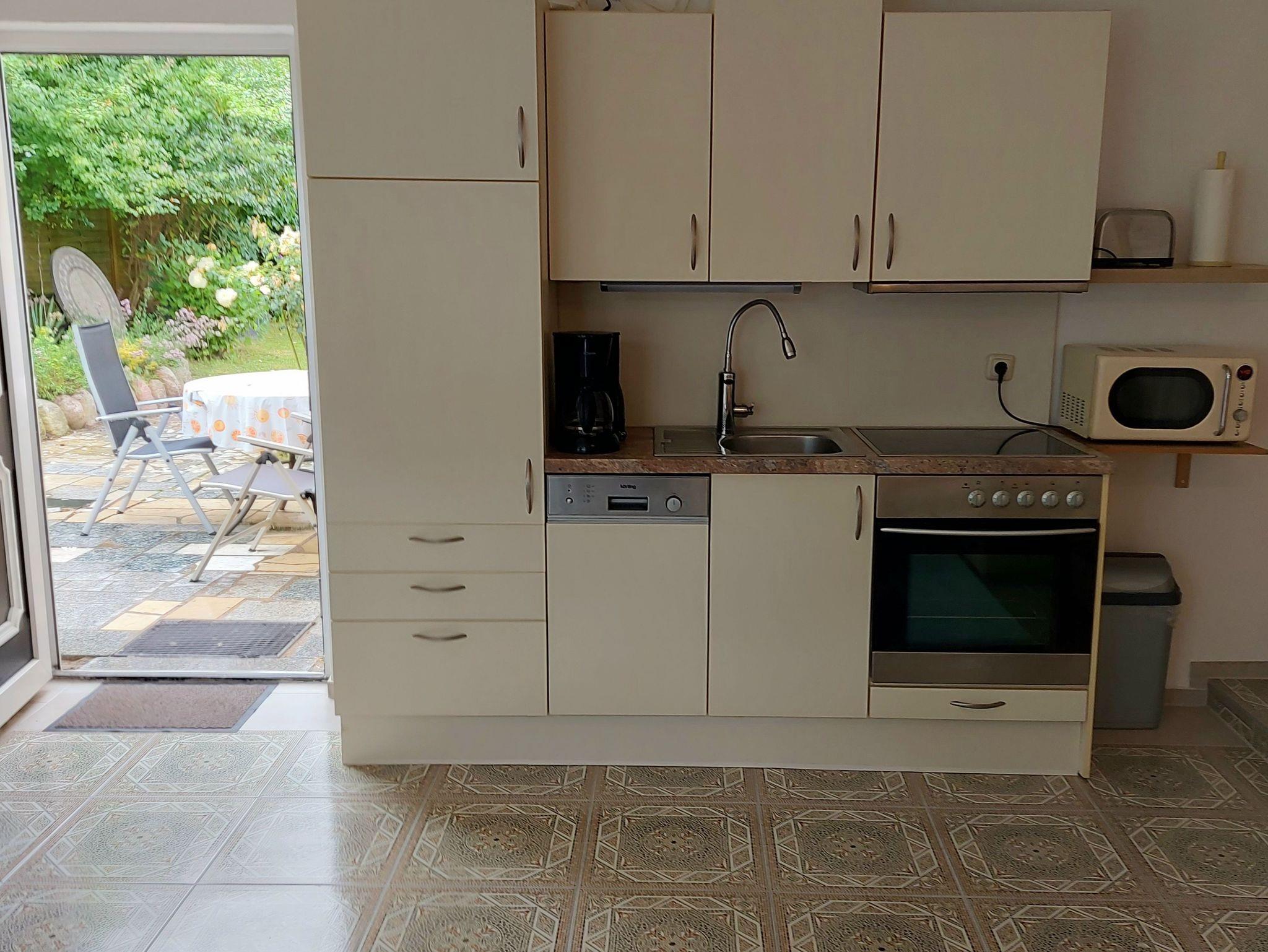 gelegen auf einem großen Grundstück mit alten Obstbäumen und sehr viel Platz, um sich auch im Freien wohl zu fühlen, bietet 2 Personen einen angenehmen Aufenthalt.