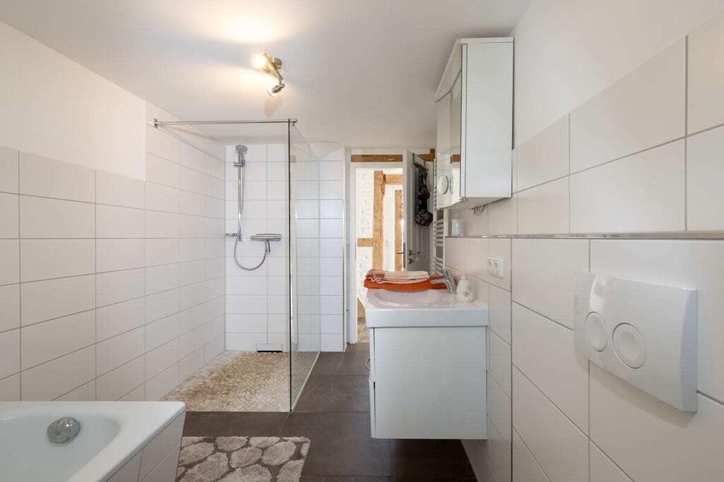 Parterre: (offene Küche(, , , , Kochnische, TV, Esstisch, Herd, Herd, Kochplatte, Wasserkocher, Toaster, Toaster, Kochherd, Kaffeemaschine, Backofen, Grill, Mikrowelle, Spülmaschine, Kühlschrank, Tiefkühlschrank, Heizung), Schlafzimmer(, , , Schlafcouch 1 Pers., Heizung), Badezimmer(, , Toilette, Badewanne, Dusche, Dusche, Waschbecken, Heizung, Föhn), Wintergarten(, , Bibliothek, TV, DVD-Spieler, DVD-Spieler, Radio, Heizung), Abstellraum(, Trockner, Waschmaschine, Bügelbrett, Bügeleisen, Trockenschrank)) In der 1. Etage: (Schlafzimmer(, , Doppelbett), Schlafzimmer(, , Doppelbett), Badezimmer(, Toilette, Dusche, Waschbecken, Föhn)) , Internet, Internet, Terrasse(Gartenmöbel), Garten(Zentraler Grill, Liegewiese, Grill, Gartenmöbel, Liegen)
