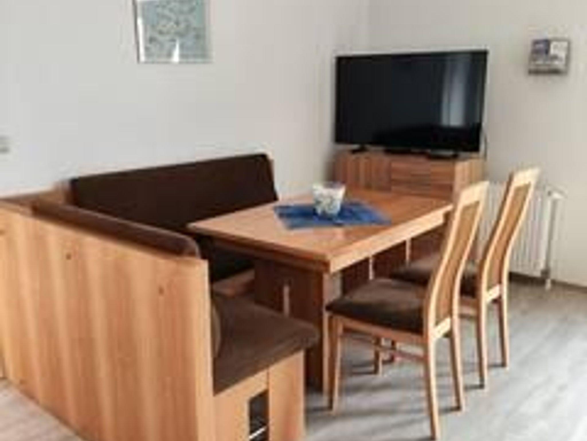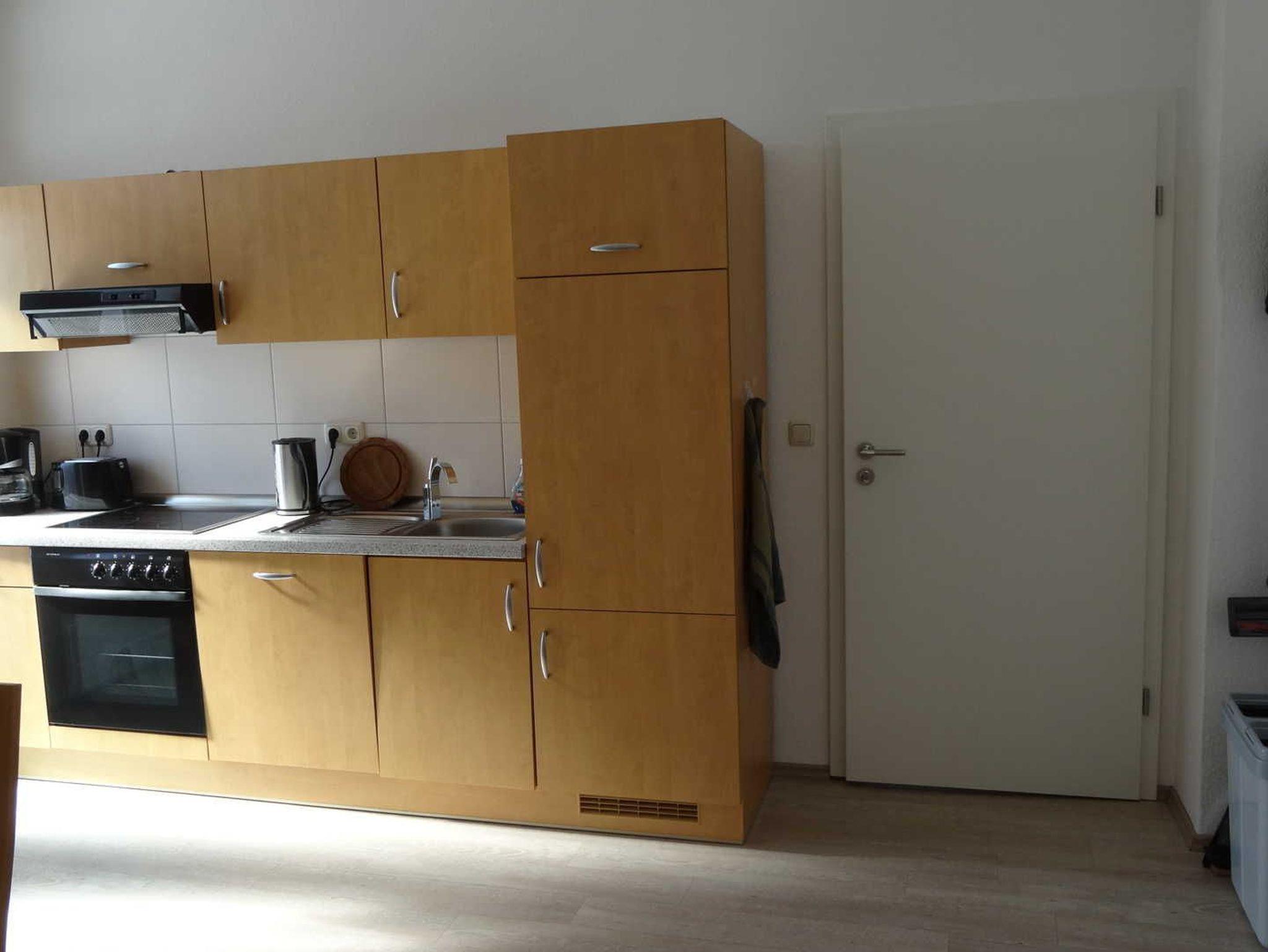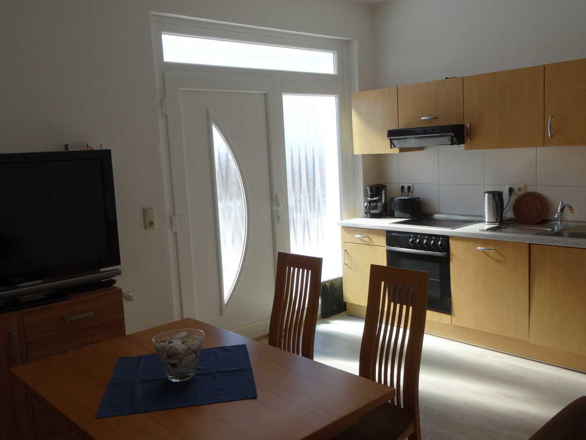 Die Ferienwohnung hat einen separaten Eingang. Dieser ist über eine Außentreppe zu erreichen. Die FeWo ist 43 m² groß und hat ein separates Schlafzimmer mit einem Doppelbett und einer ausziehbaren Schlafcouch. An den Fenstern befinden sich Rollläden. Im großen Wohn-/Essraum befindet sich ein Fernseher, Geschirrspüler, Ceran-Kochfeld, Backofen, Kühlschrank mit Gefrierfach und eine Essecke für 5 Personen. Im Bad befindet sich eine große Dusche. Natürlich ist eine kostenlose W-LAN Nutzung möglich.