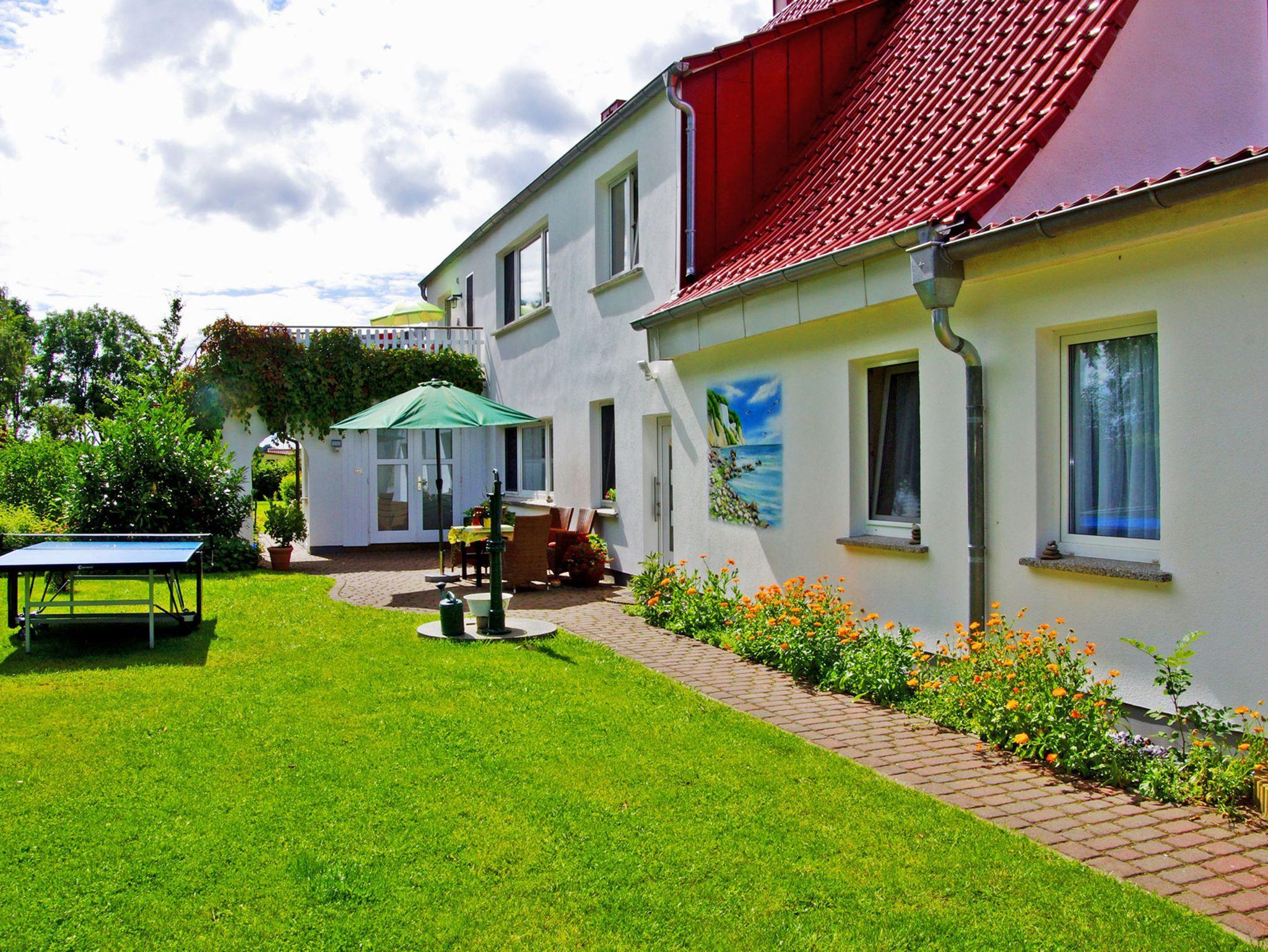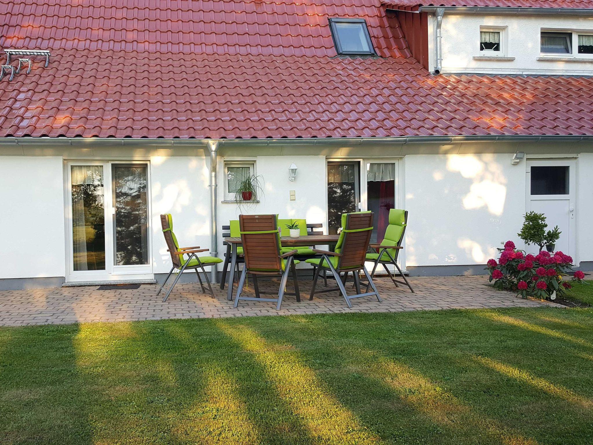 Moderne Ferienwohnung Wiesenblick auf Rügen mit Terrasse und Garten, ideal zum Entspannen und für Familien.