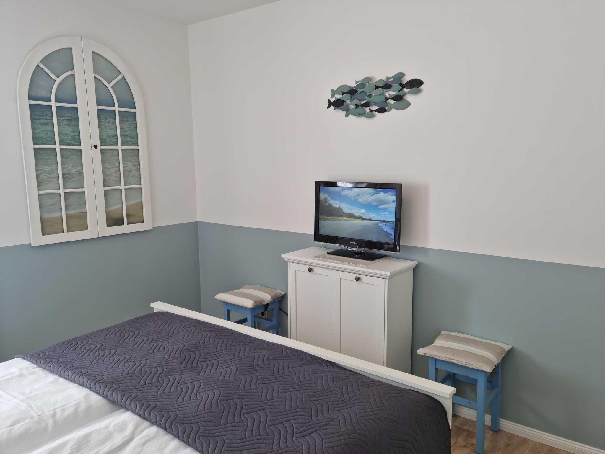 Ebenfalls mit Doppelbett (180 * 200 cm) ist das zweite, maritim eingerichtete Schlafzimmer ausgestattet.