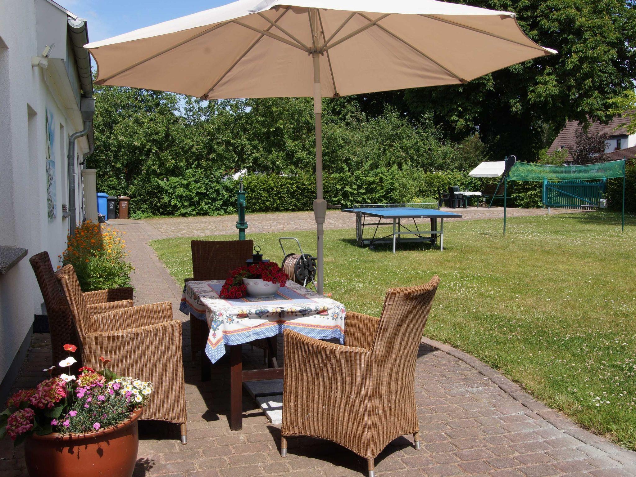 Sie können bei schönem Wetter auch an der frischen Luft auf unseren Terrassen frühstücken und die schönen Sommerabende zum Grillen nutzen. An unserem Lagerfeuerplatz oder in der Feuerschale können Sie bei günstiger Witterung den Abend am knisternden Feuer ausklingen lassen. Das große, eingezäunte Grundstück mit der Gänseblümchen-Tobewiese ist ideal für Ihre Kinder. Sie können hier Tischtennis oder Ball spielen.