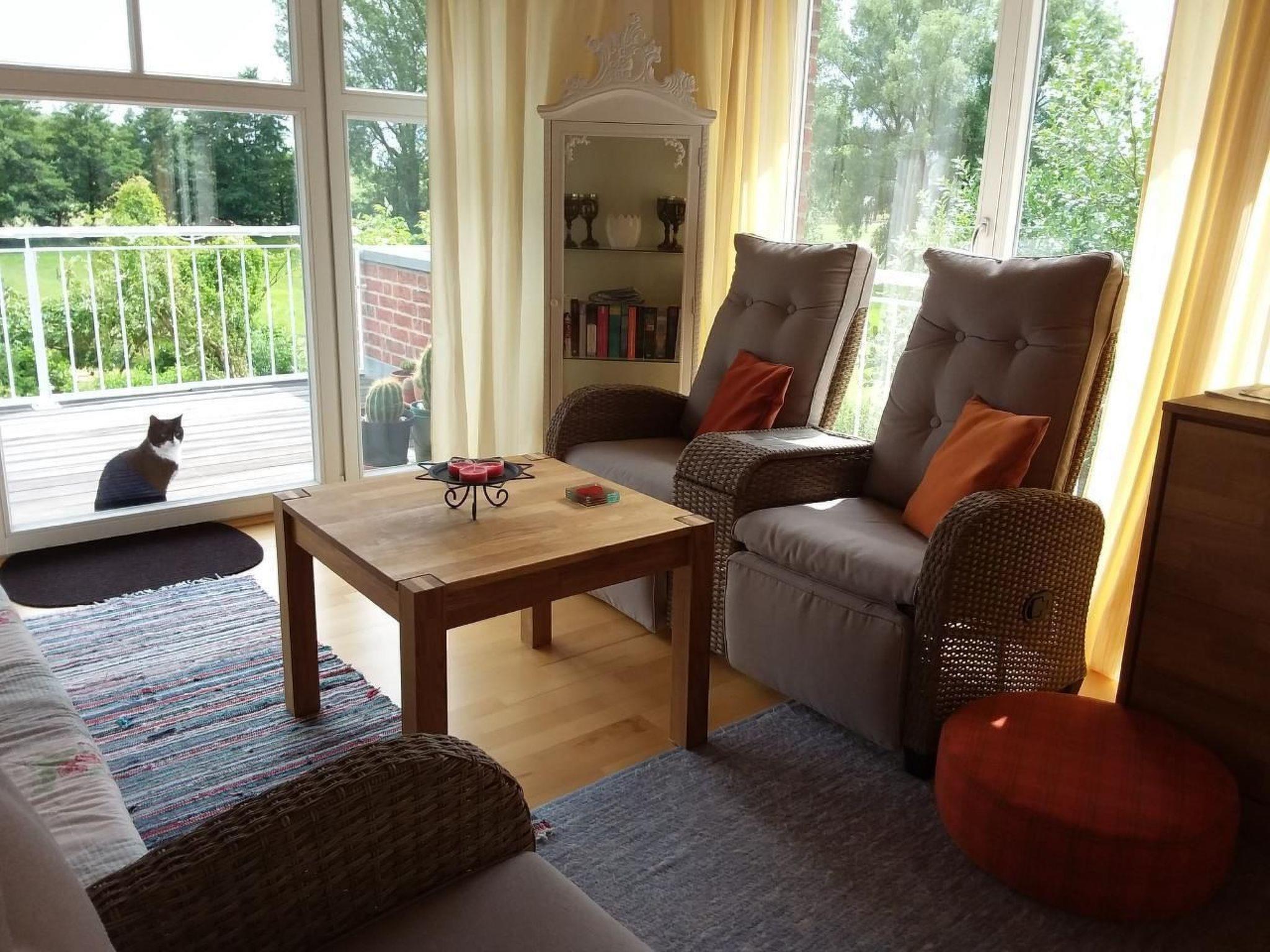 Der Außenbereich entpuppt sich als wahres Paradies für Erholungssuchende. Auf einem großzügigen, rund fünftausend Quadratmeter großen Grundstück mit Garten haben Sie unendlich viel Platz zum Spielen, Toben, Entspannen und Verweilen. Eine nach Süden ausgerichtete Terrasse sowie ein Balkon nach Südwesten gewähren idyllische Ausblicke auf grasende Pferdekoppel, und in der Abenddämmerung können Sie das naturschauspiel von Rehen, Hasen und Füchsen beobachten. Für Hundebesitzer bietet sich die Freude, dass auch vierbeinige Freunde (ausschließlich Hunde) hier herzlich willkommen sind.