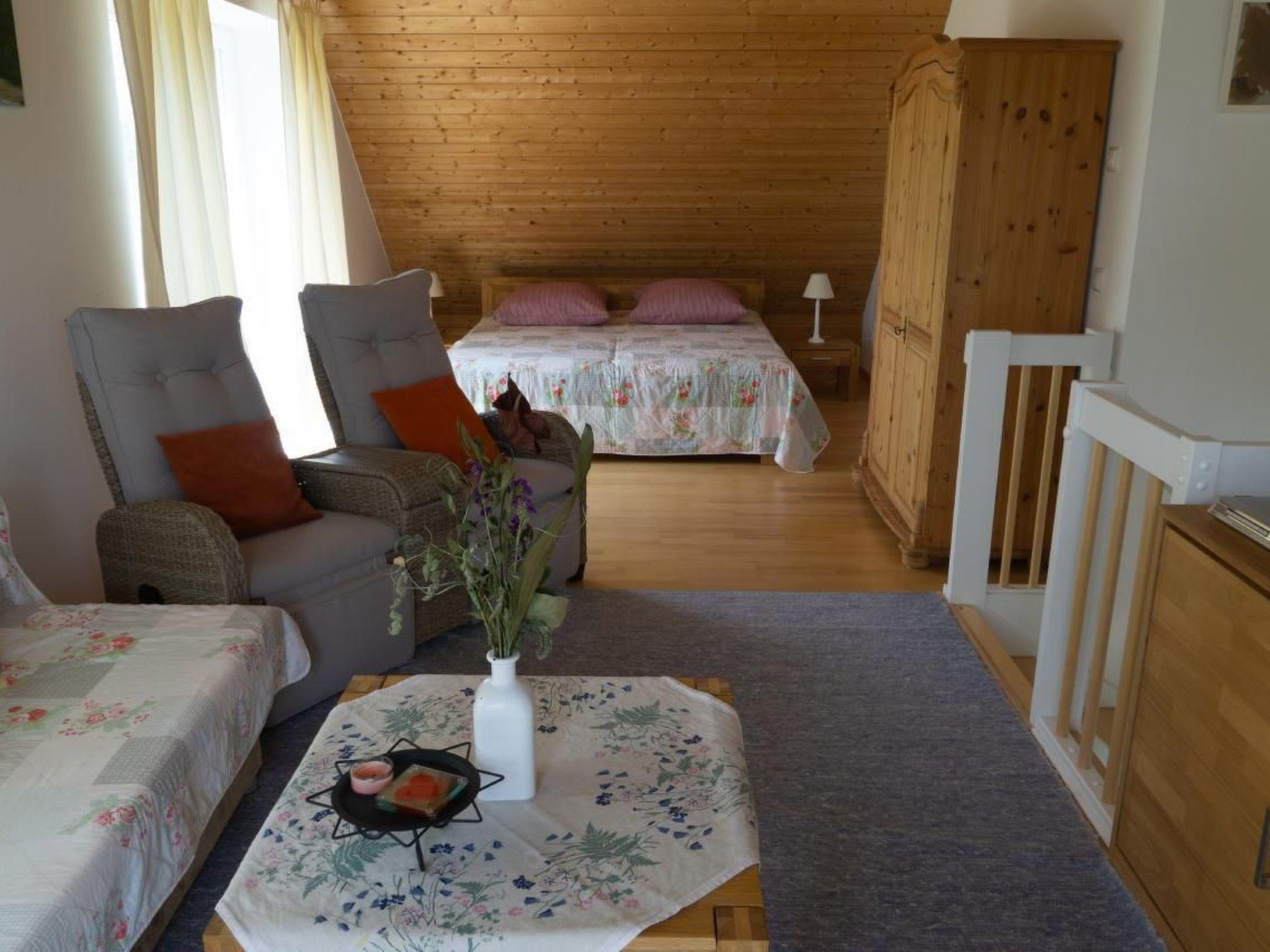 Im Innenbereich werden Sie zunächst von einer modern und hochwertig ausgestatteten Wohn-Einbauküche im Erdgeschoss willkommen geheißen, die kulinarisch keine Wünsche offen lässt. Das angrenzende Badezimmer mit Toilette ergänzt die komfortable Ausstattung. Im Obergeschoss lockt ein kombinierter Wohn- und Schlafraum, in dem bis zu 3 Personen bequem Platz finden. Große Fenster nach Süden und Westen hin öffnen den Blick ins Grüne und baden den Raum in natürlichem Licht.