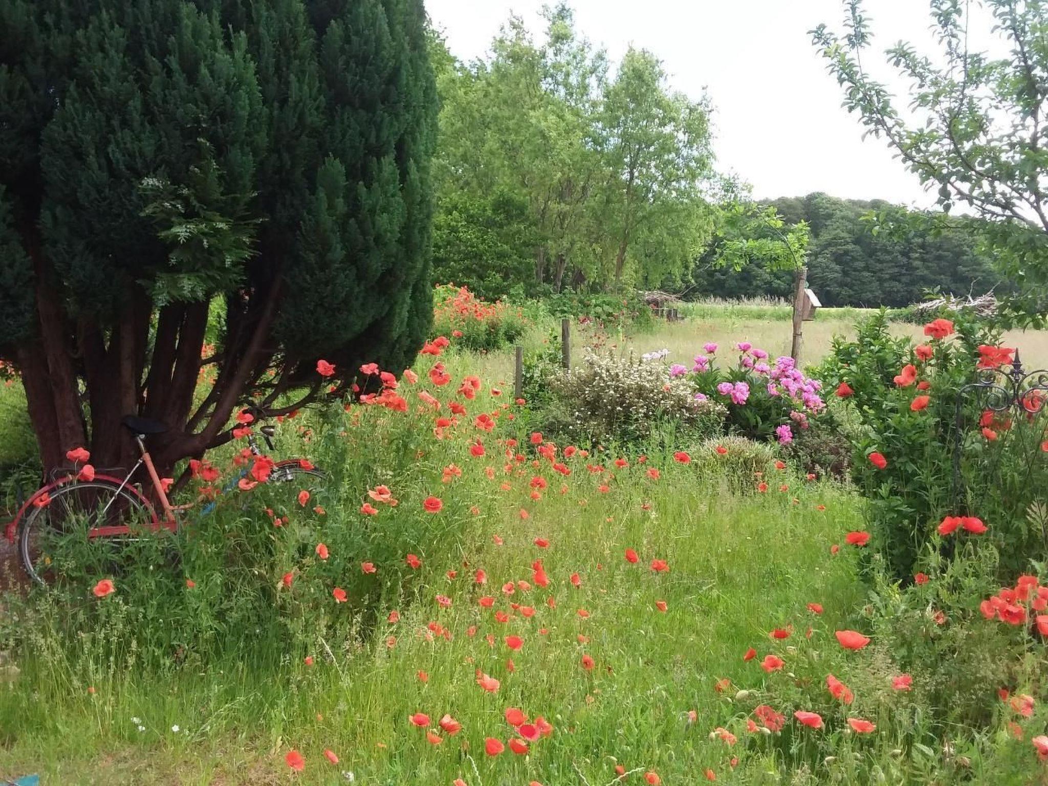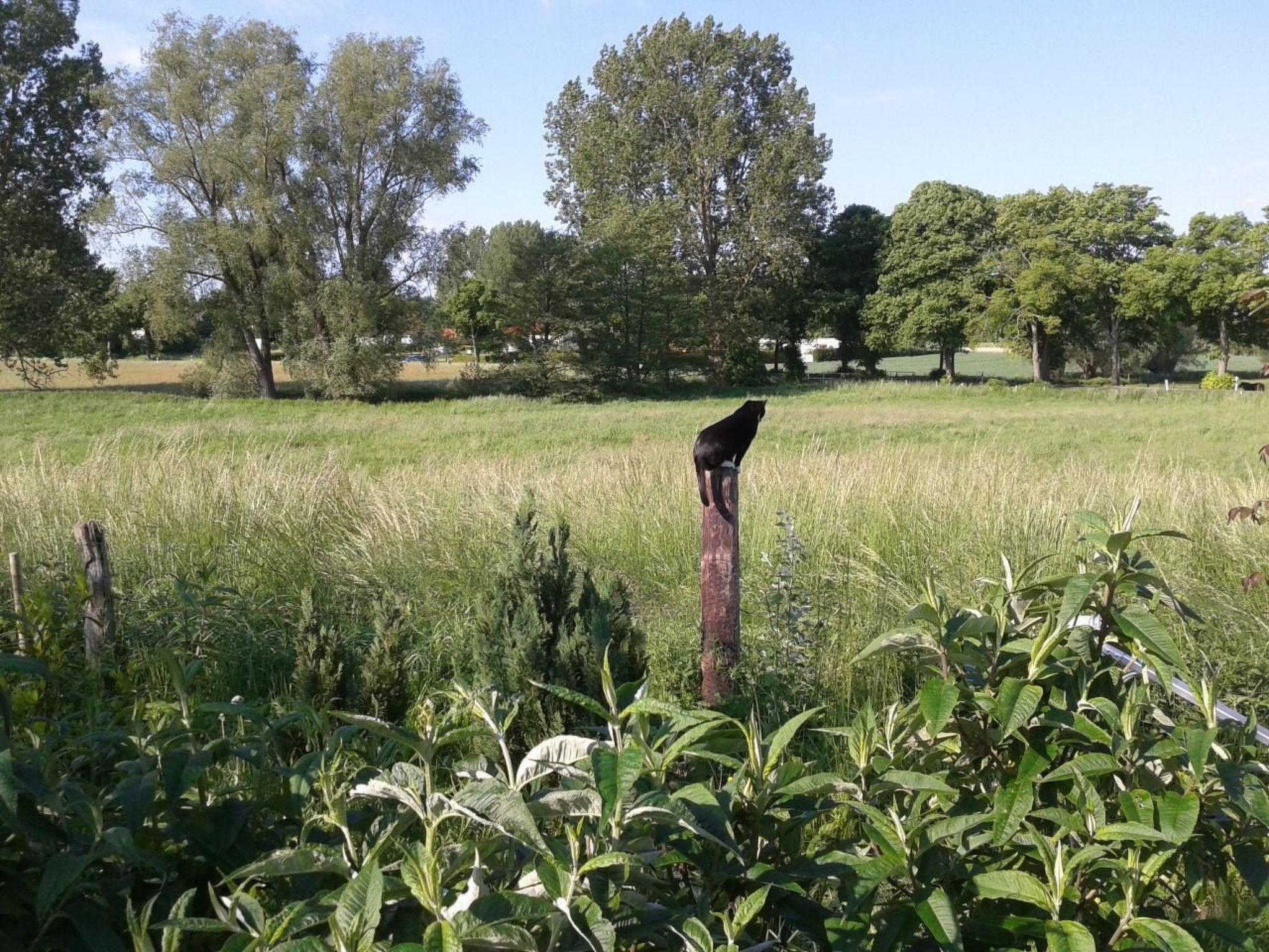 Das weitläufige Außengelände von etwa fünftausend Quadratmetern Größe lädt ein zum Spielen, Erholen und Verweilen. Der Garten sowie die südlich ausgerichtete Terrasse stehen Ihnen vollständig zur Verfügung, von wo aus Sie den Blick auf Pferdekoppeln und die abendliche Dämmerung genießen können. Die direkte Nähe zur Natur verspricht mit etwas Glück Sichtungen von Rehen, Hasen und Füchsen. Für Hundebesitzer bietet sich die Freude, dass auch vierbeinige Freunde (ausschließlich Hunde) hier herzlich willkommen sind.
