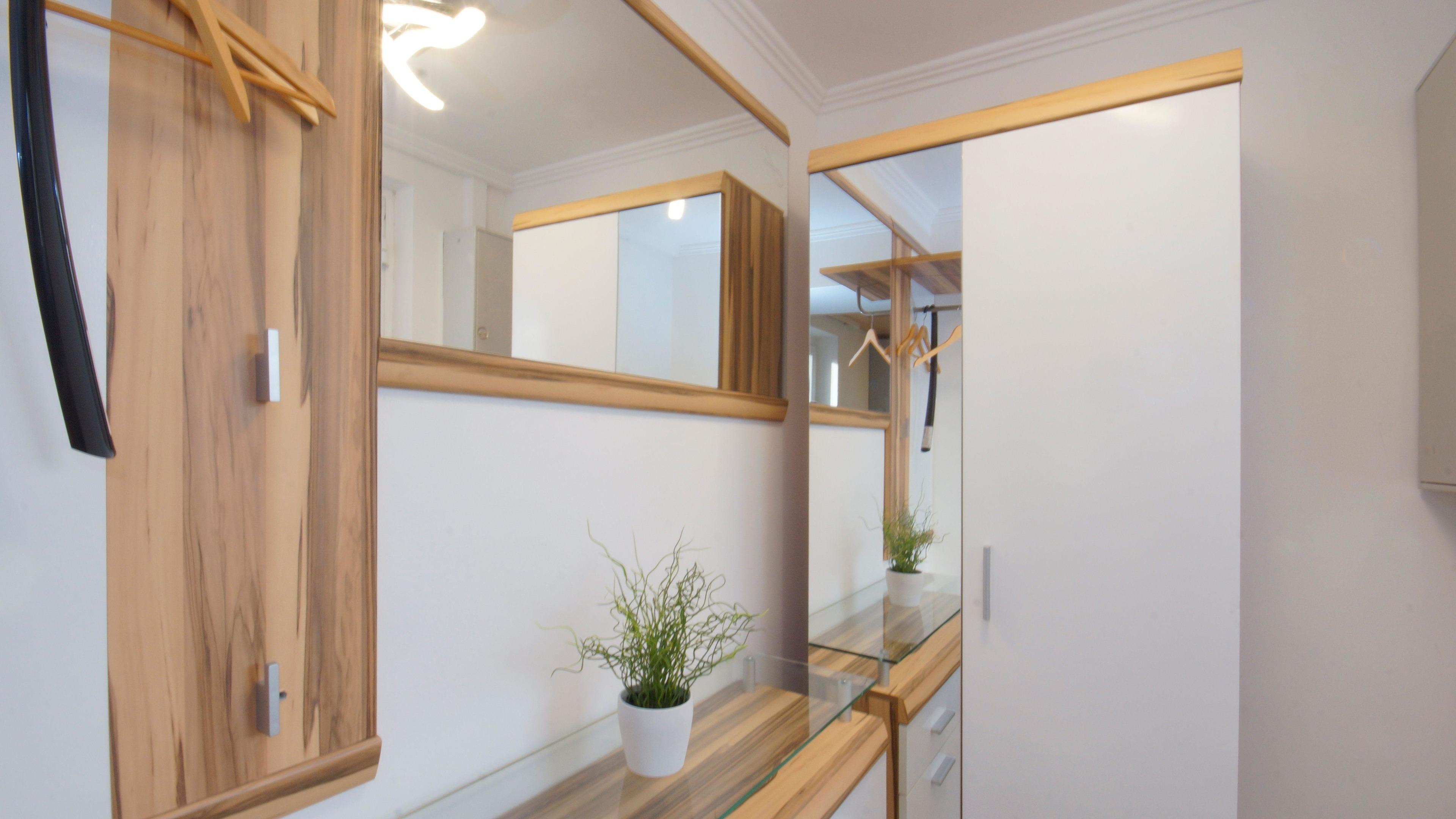 Die Ferienwohnung ist ausgestattet mit einem kombinierten Wohn-/Schlafraum (für 2-3 Personen, 3. Person wäre eine Aufbettung im gemütlichen Schrankbett), Küche (ohne Backofen), Toaster, Kaffee- und Brotmaschine, Bad mit Dusche und WC, SAT-TV, Telefon.
