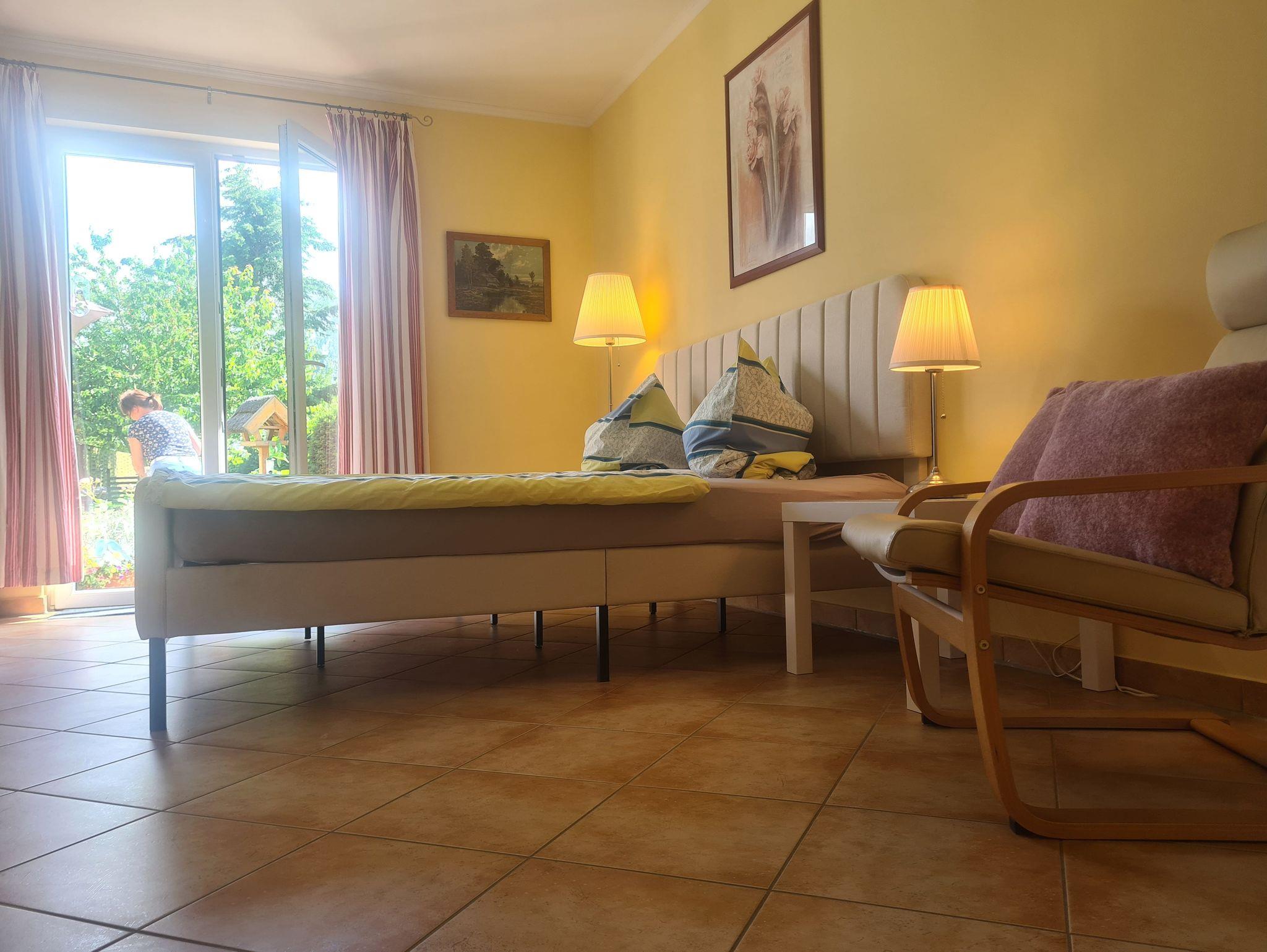 FeWo am Kleinbauernhof Gersdorf bei Kühlungsborn, 1-Raum-Ferienwohnung (max 2 Pers, 45m²) mit Gartenterrasse