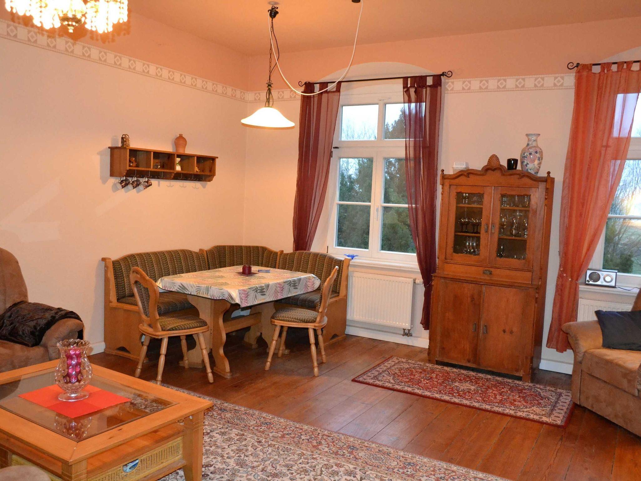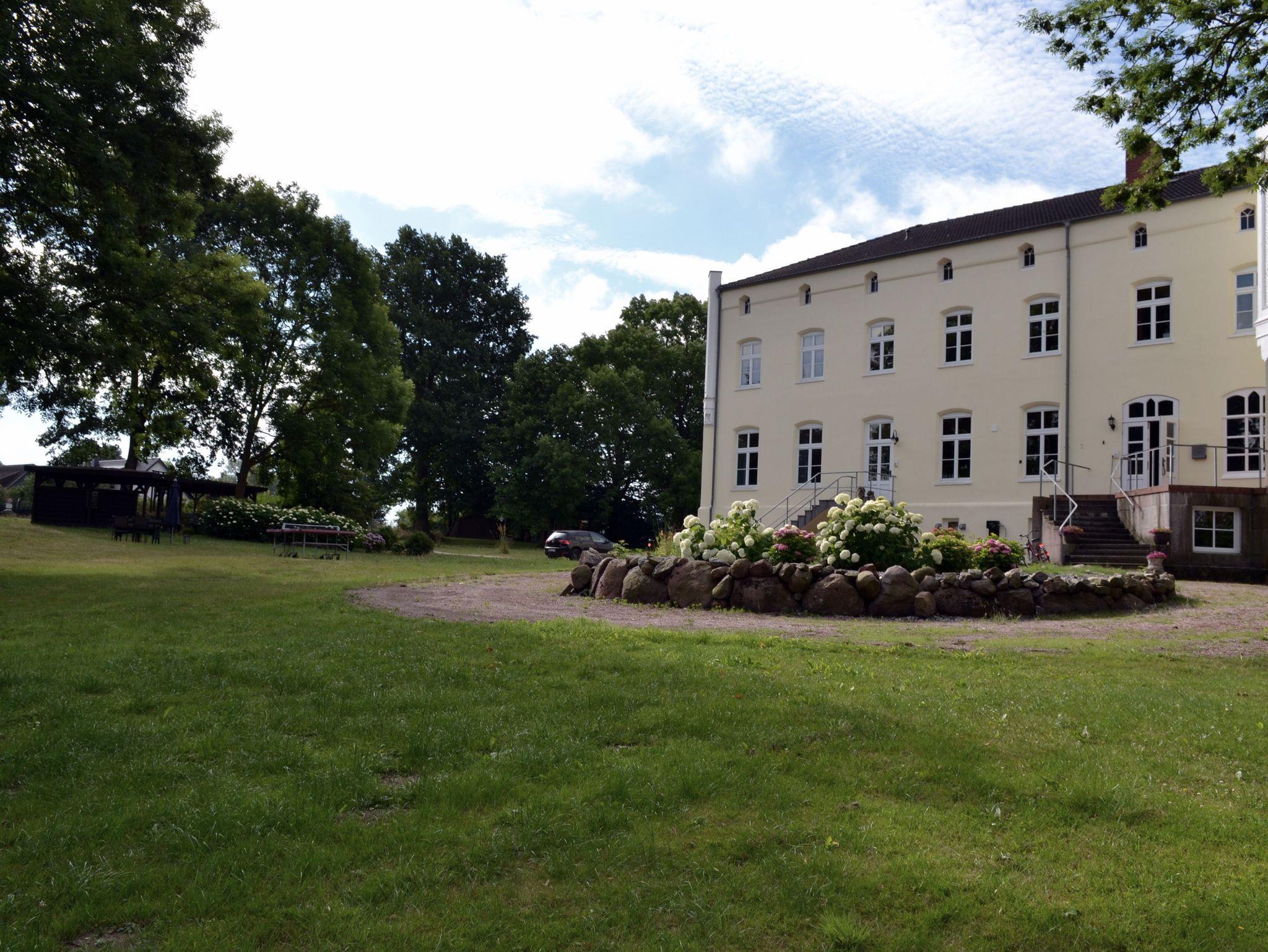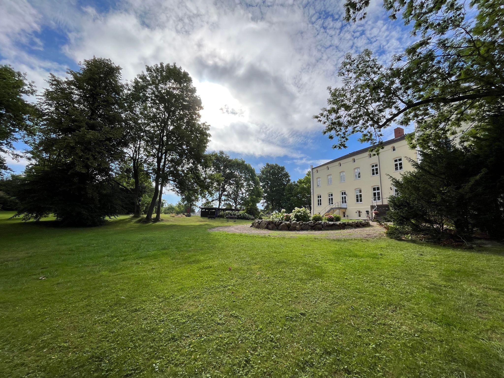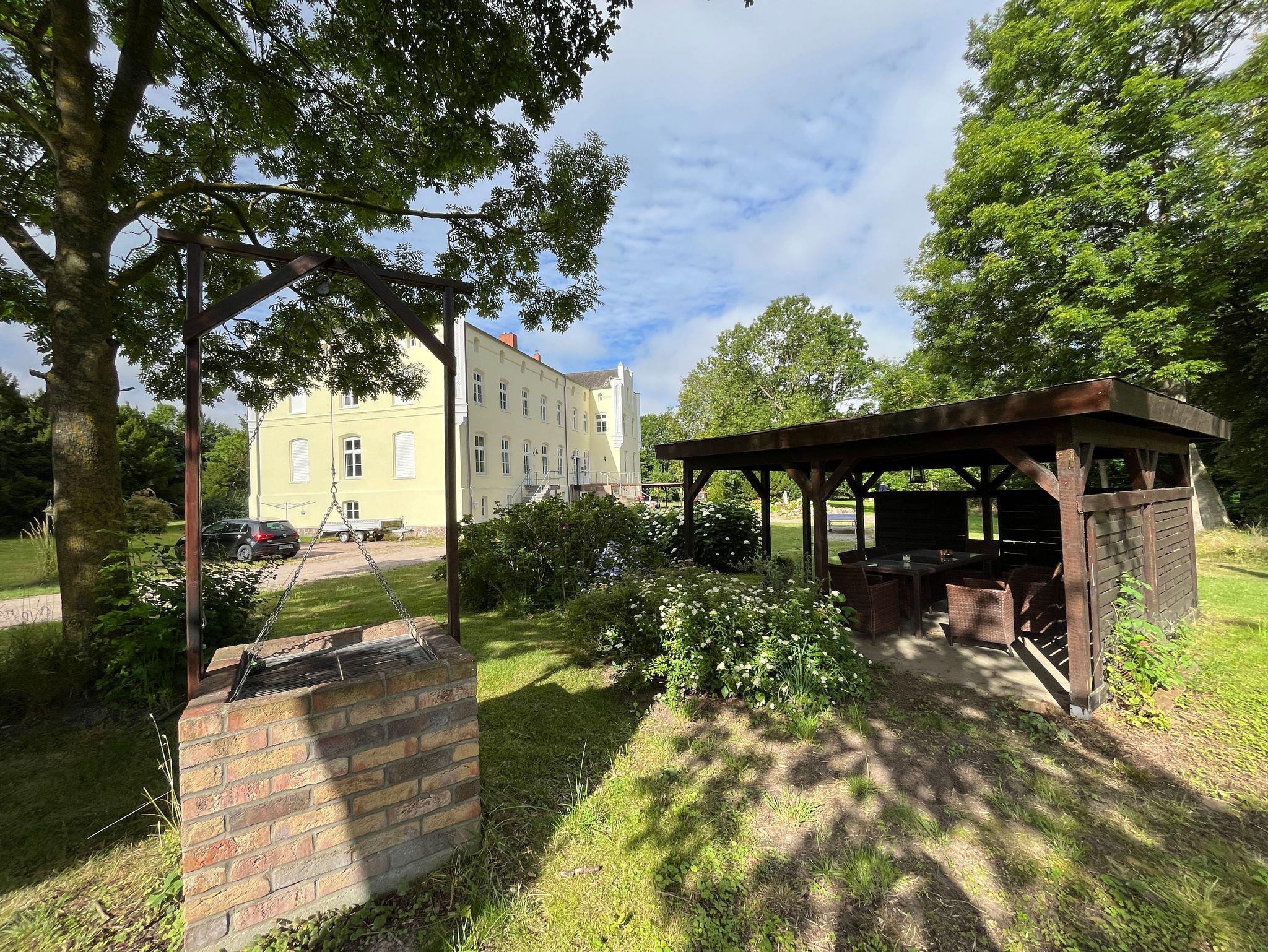Idyllische Ferienwohnung im Schloss Gersdorf, nahe Ostsee, mit Garten, Spielplatz und Holzbackofen für besondere Urlaubsmomente.