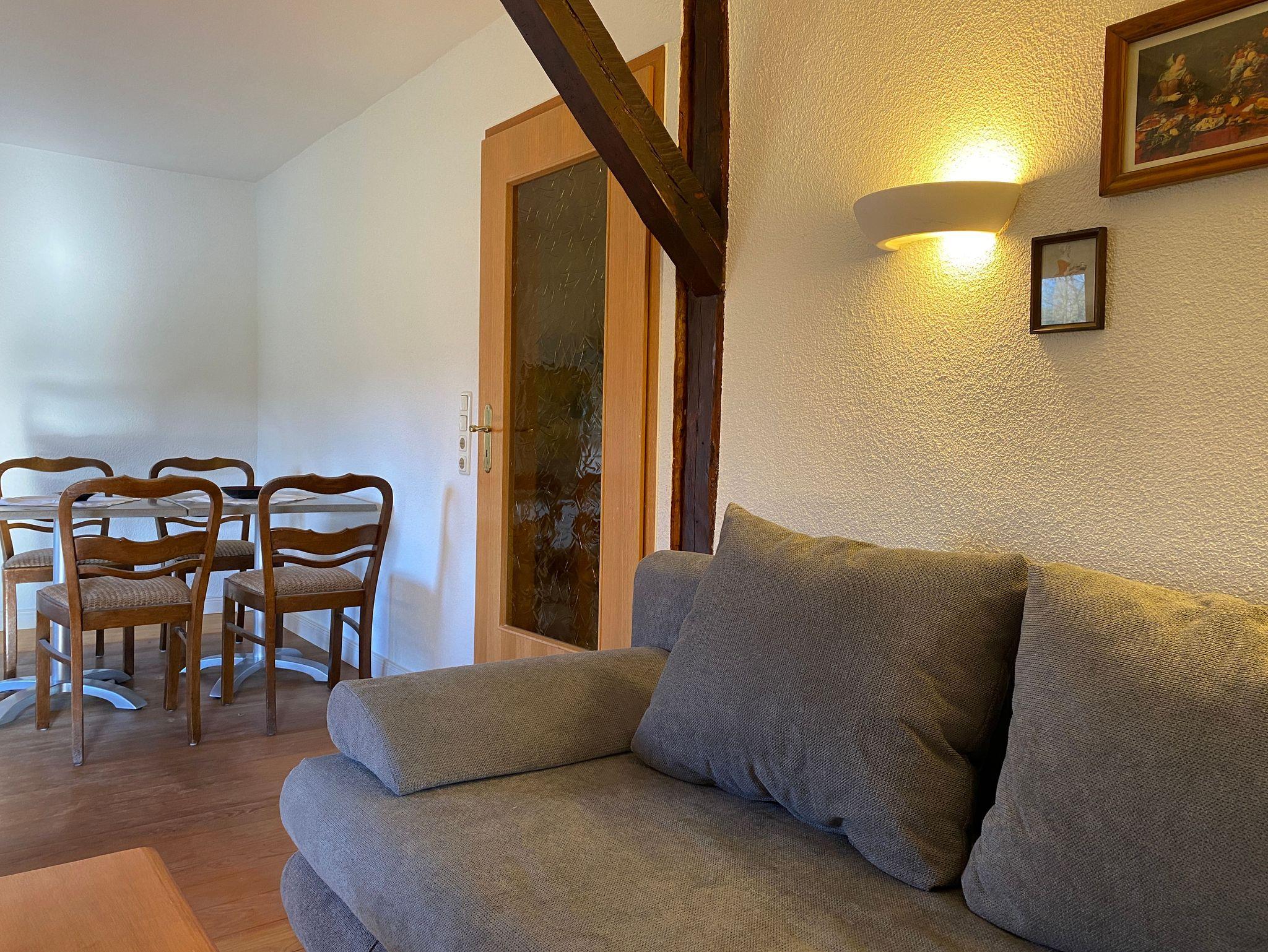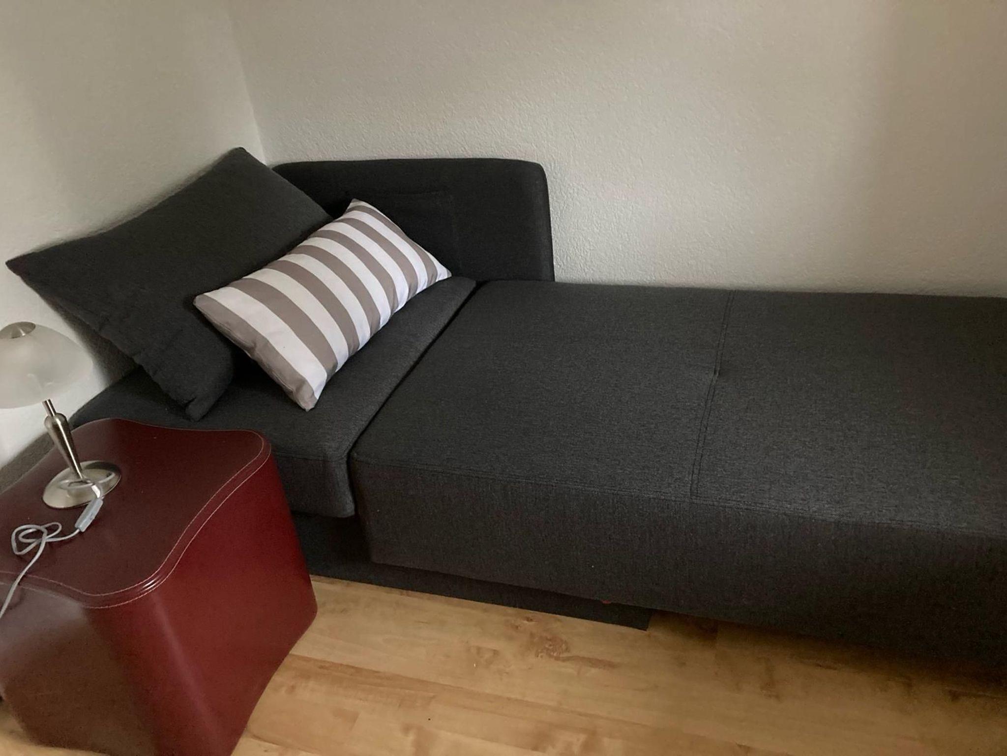 • Wohnzimmer: Couch (Schlafcouch ausziehbar 1,40x2m), Esstisch mit 4 Stühlen, TV-Flachbild