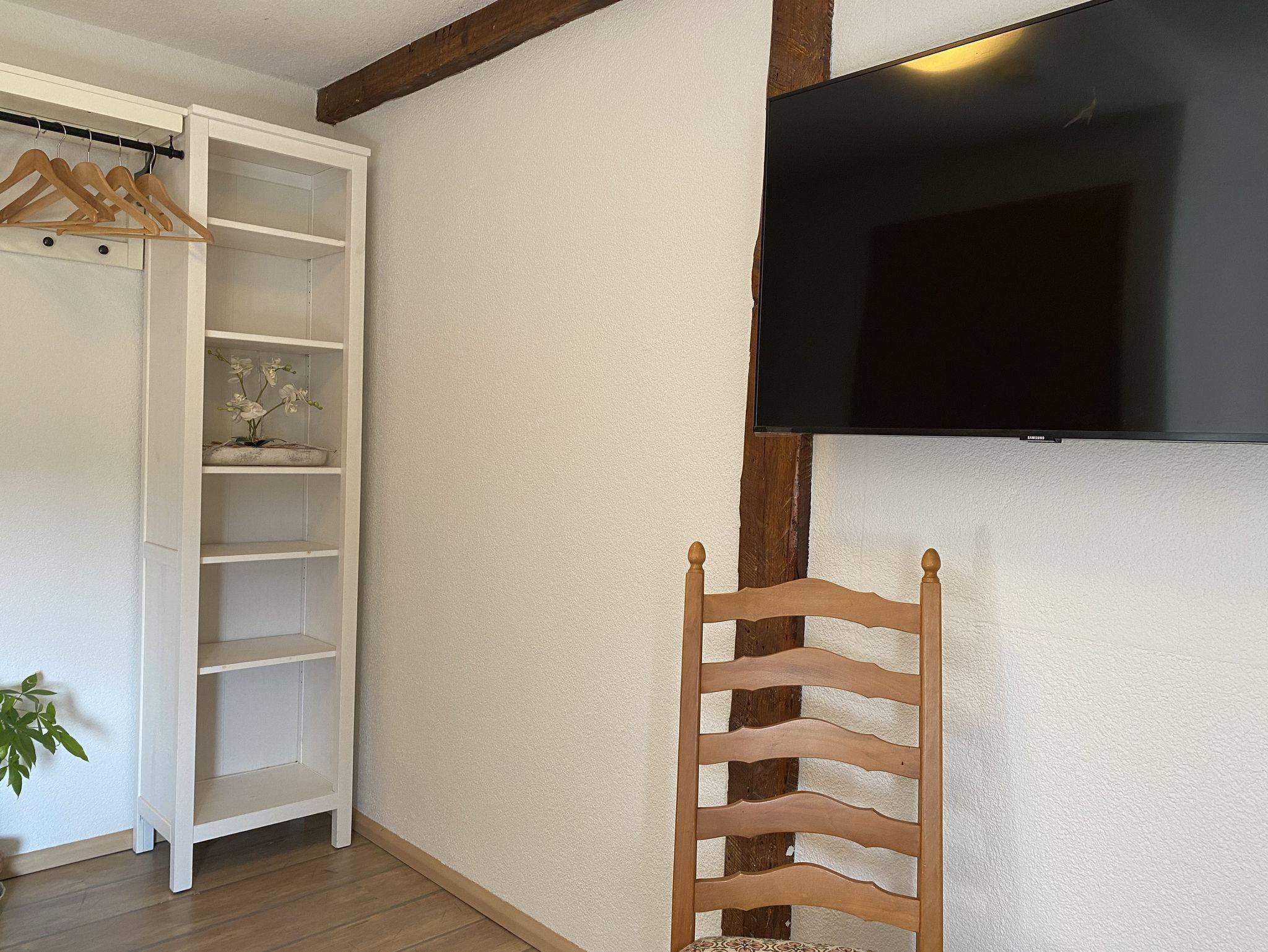 Schlafraum 1 mit Schlafcouch (1,60m x 2m) und TV, 1 Babybett stellbar.