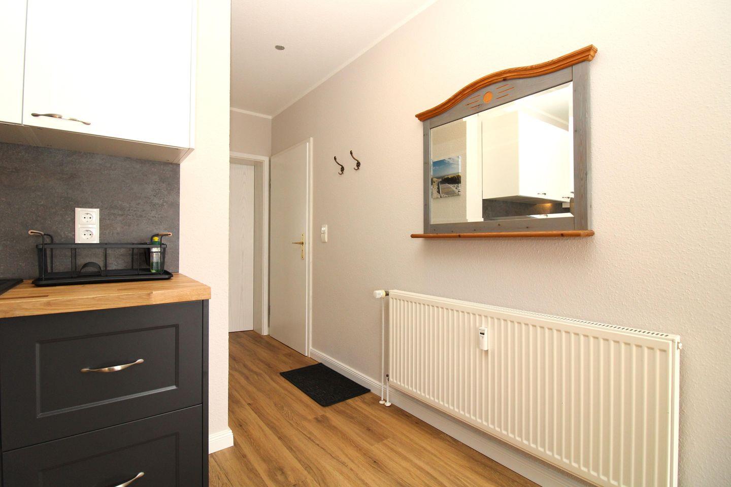 Vom Eingangsbereich mit Garderobe und Wandspiegel erreichen Sie bequem alle Räume Ihrer Ferienwohnung.