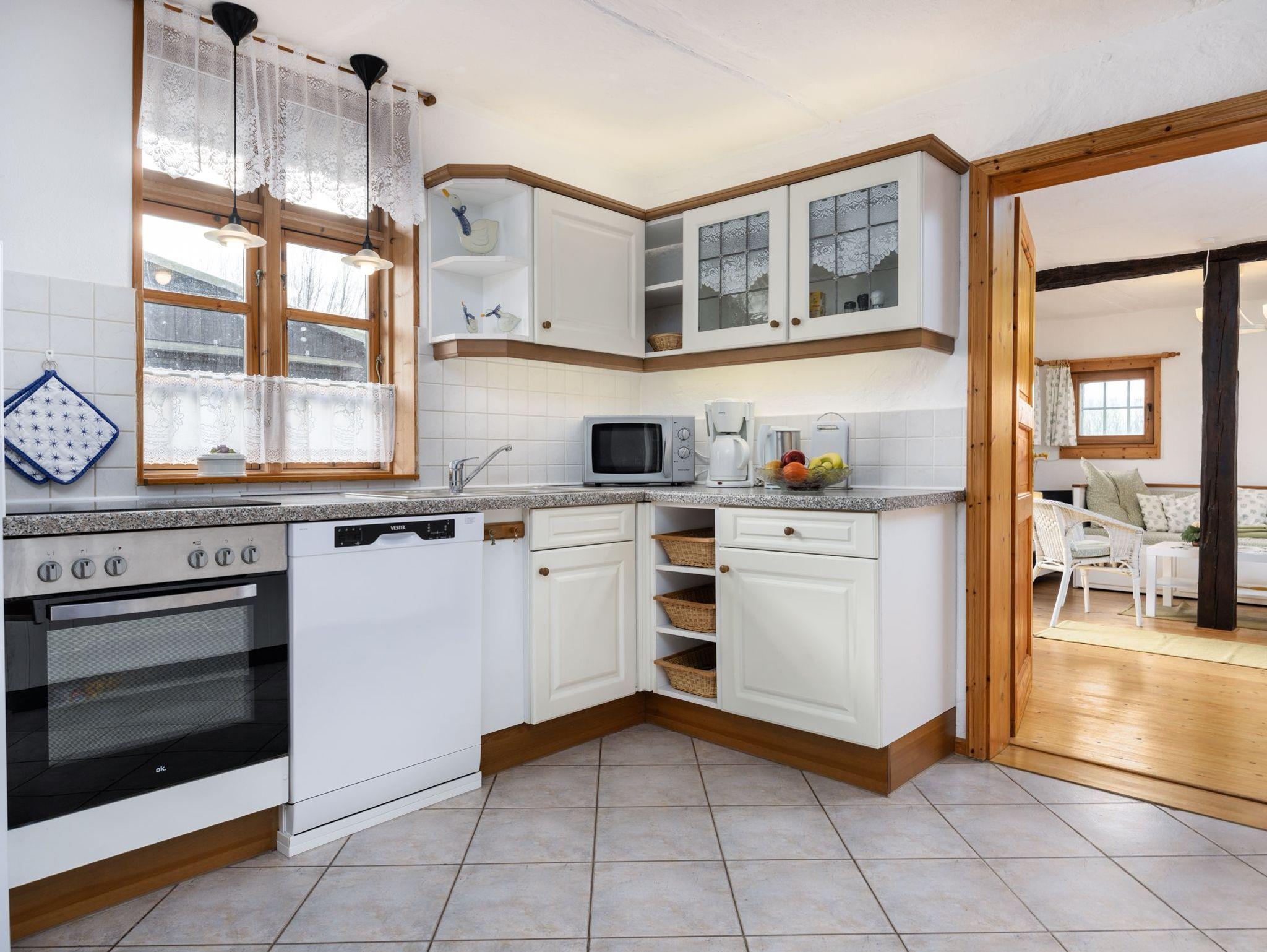 Unsere Ferienwohnung Neubukow ist etwa 52 m² groß, mit schönem Wohnzimmer , Küchenzeile mit Geschirrspüler, Schlafzimmer mit Doppelbett (1,80 x 2 m), welches Durchgangzimmer zum Bad ist, separate, offene Schlafgalerie mit 2 Einzelkojen je 0,90 x 2 m und Duschbad/WC (alles im Landhausstil eingerichtet) und ist für maximal 4 Personen geeignet.