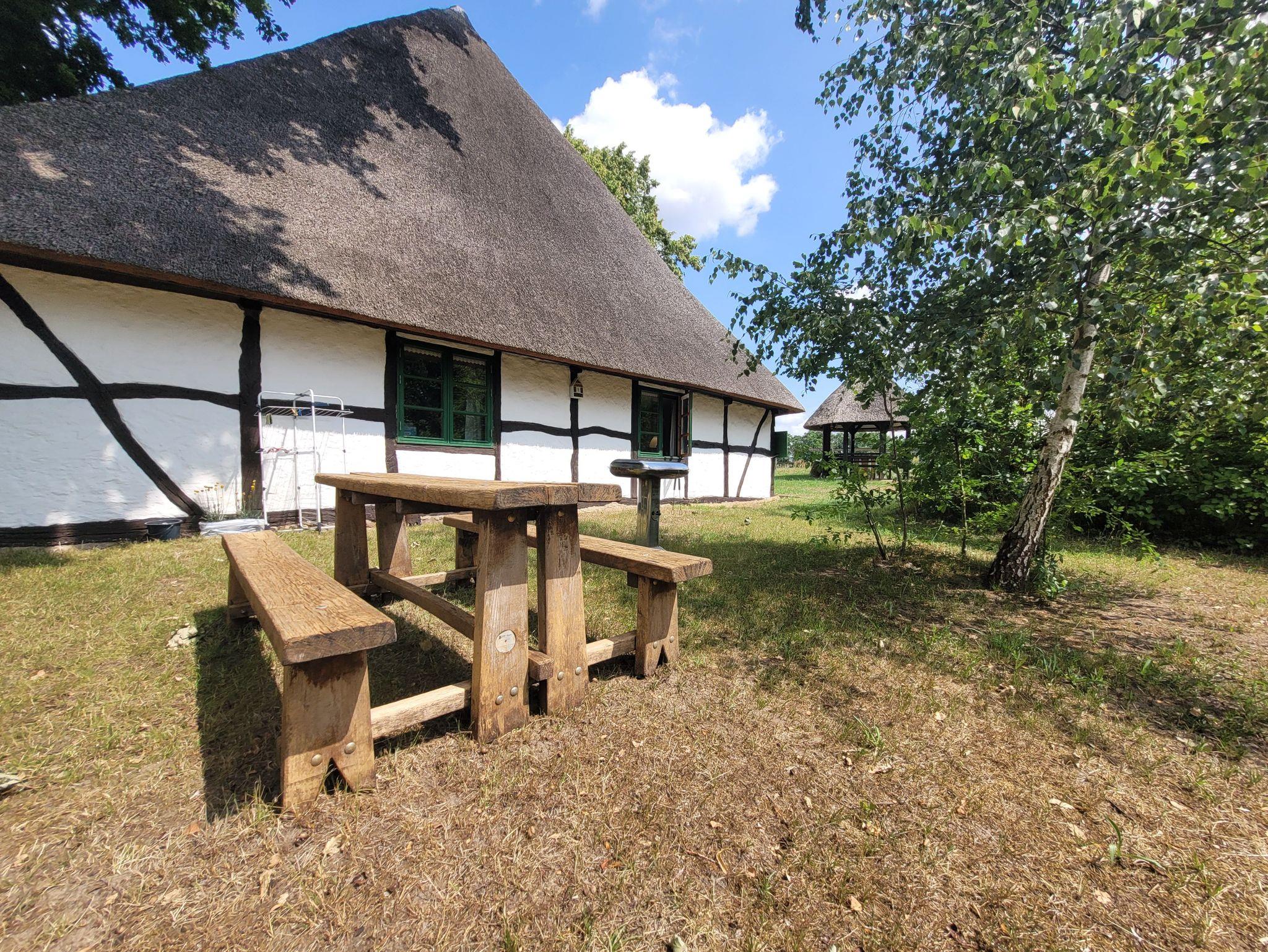 Allen Gästen steht der idyllische reetgedeckte Grillplatz im Urlaub offen.