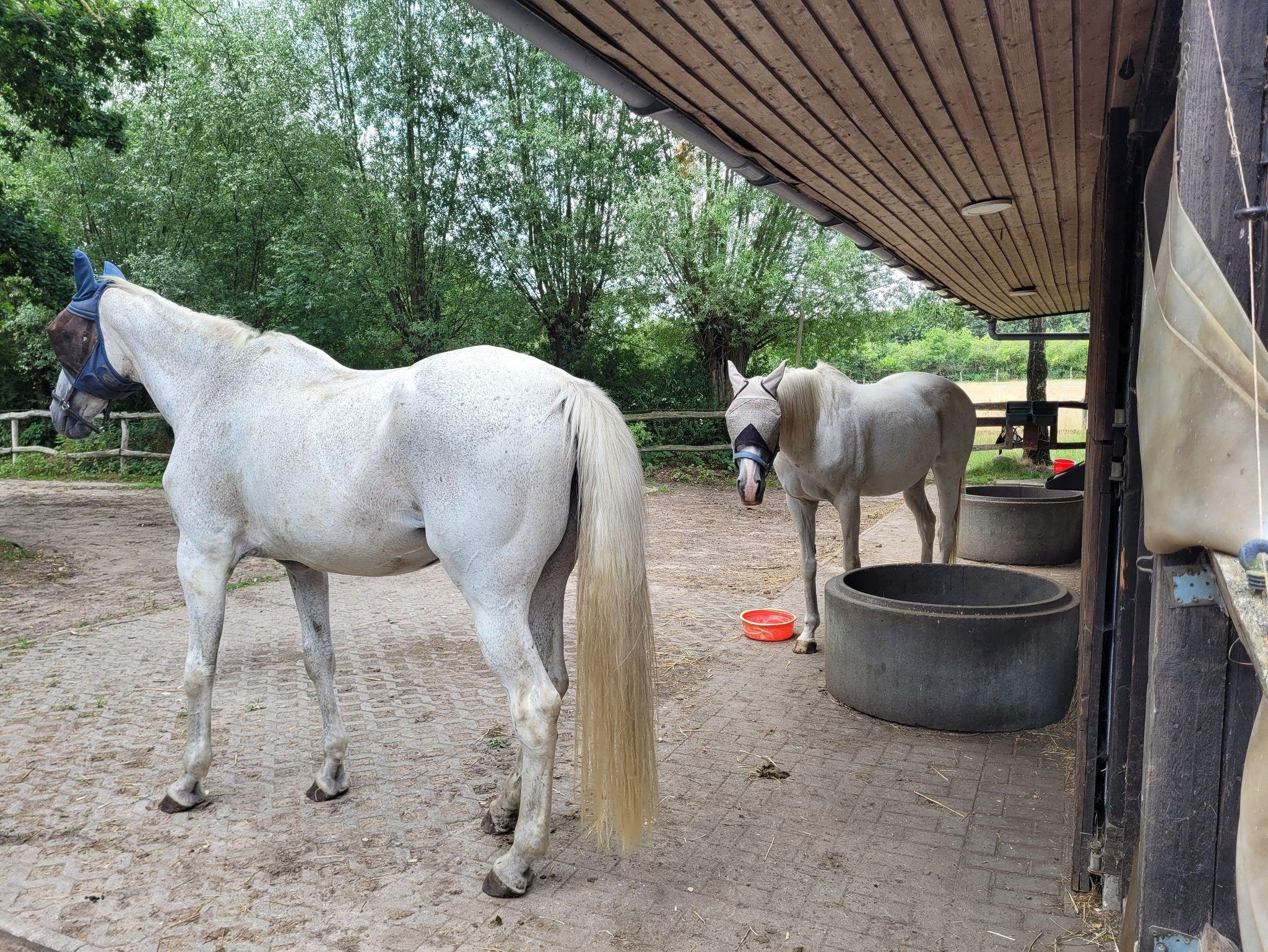 Auf unserem Hof leben außerdem Katze, Hund und viele Pferde. Diese dürfen gern gestreichelt und auch bewundert werden. Nach Vereinbarung können auch Reitstunden gebucht werden.