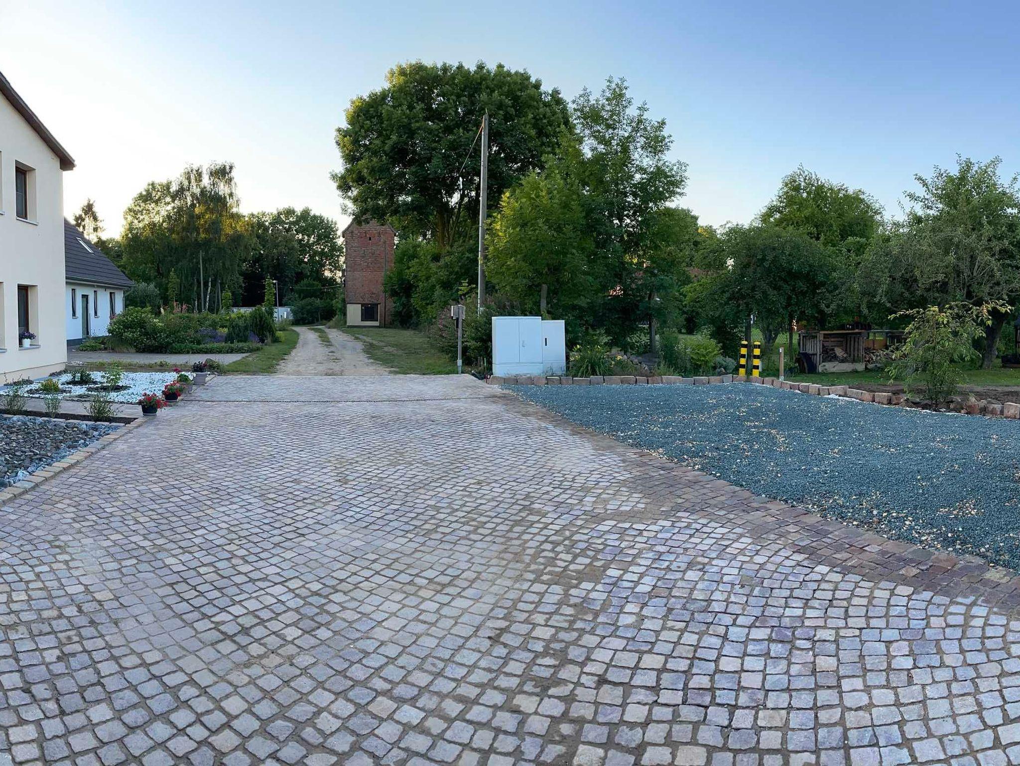 Im weitläufigen Garten des Landhauses mit alten Obstbäumen, separater Sitzecke mit Grill und Feuerschale, sowie ein Fachwerkhäuschen für Kinder findet sich Raum für Entspannung und Spiel. Ein PKW-Stellplatz mit Lademöglichkeit für Elektroautos (11KW) befindet sich direkt gegenüber vom Landhaus.