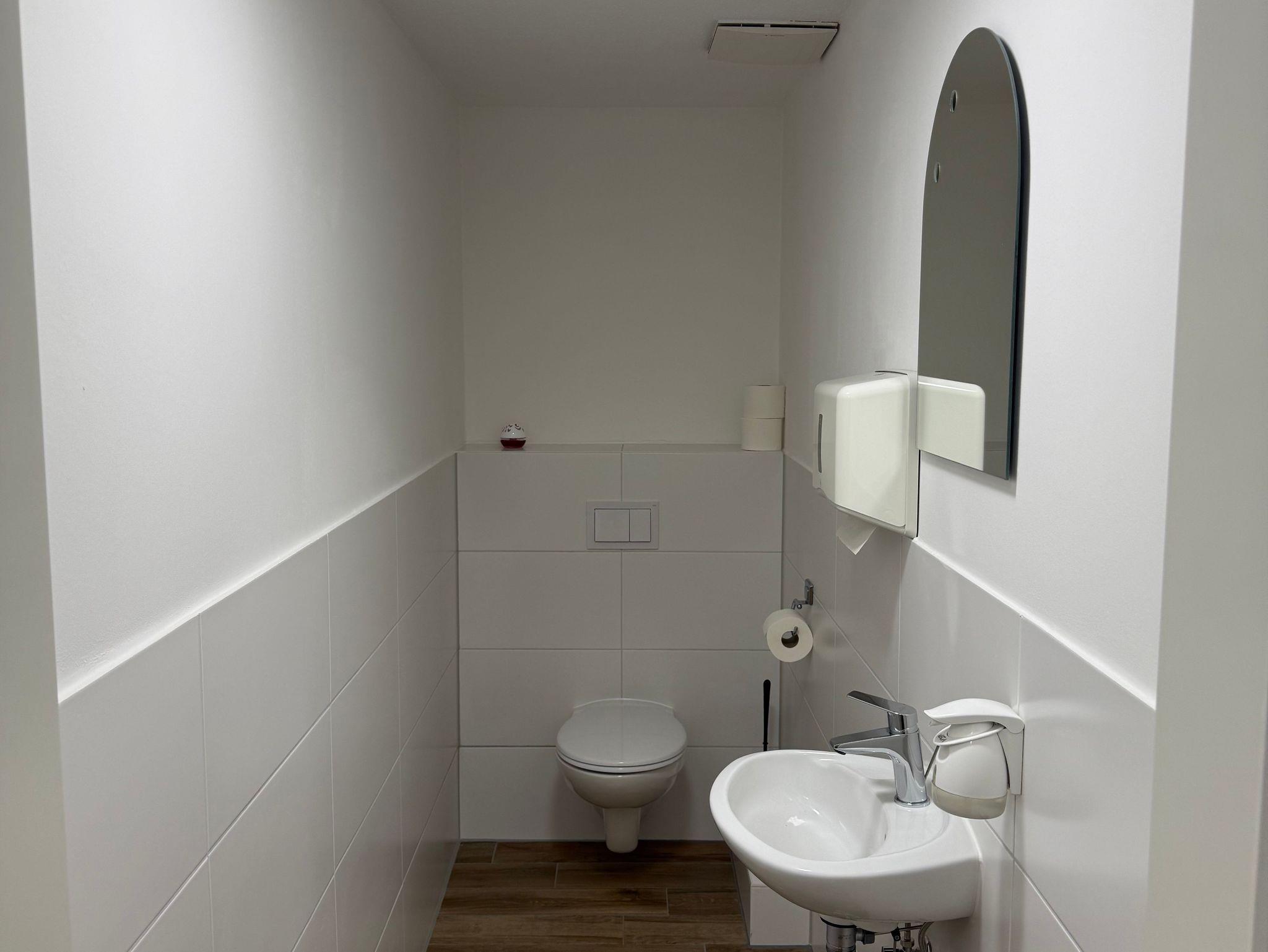Stühlen sowie zusätzlichen Schränken eingerichtet.