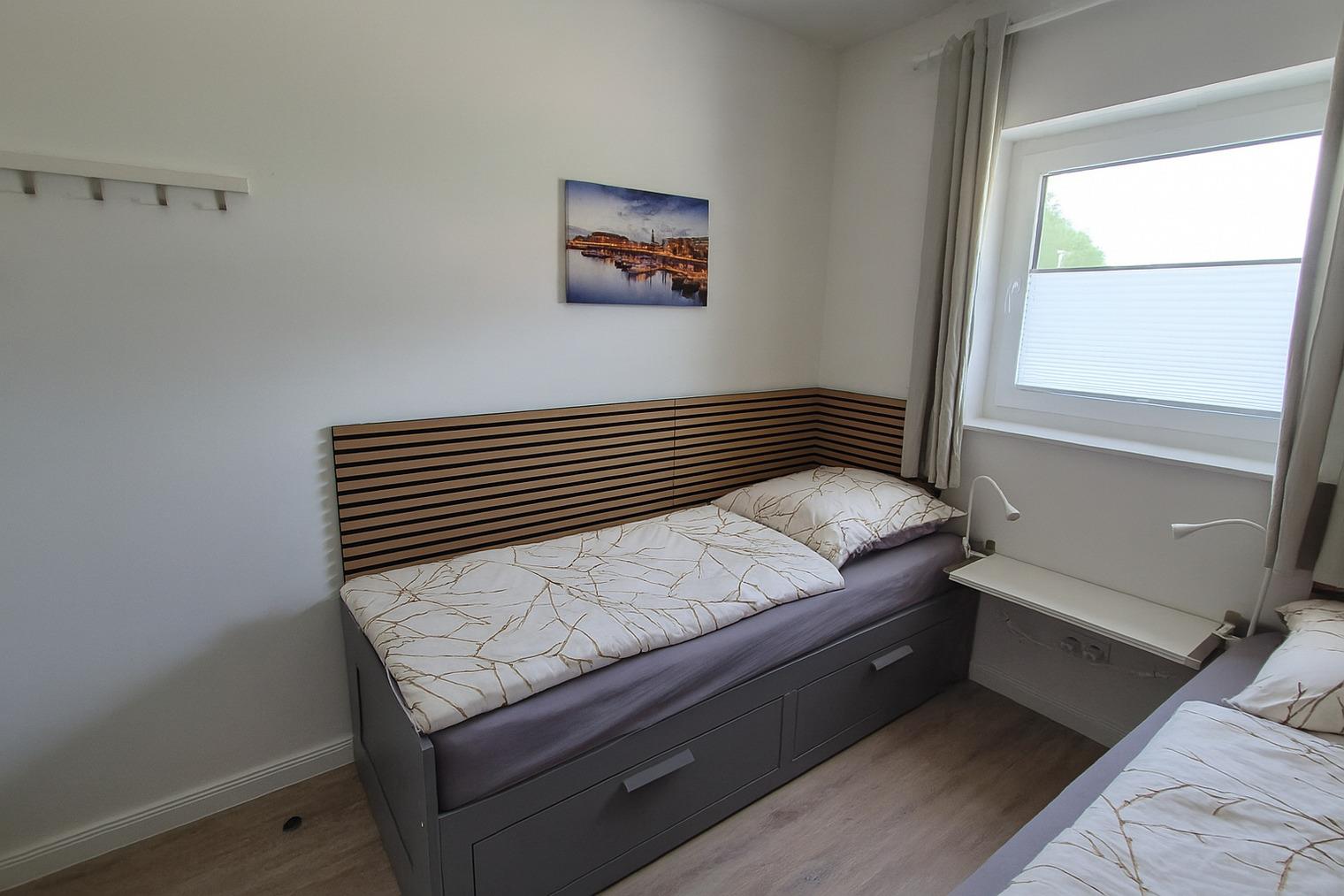 Unsere helle und großzügig geschnittene Ferienwohnung bietet Platz für bis zu 5 Personen. Sie verfügt über zwei separate Schlafzimmer – eines mit Doppelbett, das andere mit einem Etagenbett sowie einem Einzelbett. Das gemütliche Wohnzimmer lädt zum Entspannen ein und bietet einen großen Esstisch sowie einen Smart-TV. Die voll ausgestattete Küche (mit Herd, Backofen, Kühlschrank, Kaffeemaschine und mehr) lässt keine Wünsche offen. Das Badezimmer ist modern und mit Dusche sowie Fenster ausgestattet. WLAN ist kostenlos verfügbar.