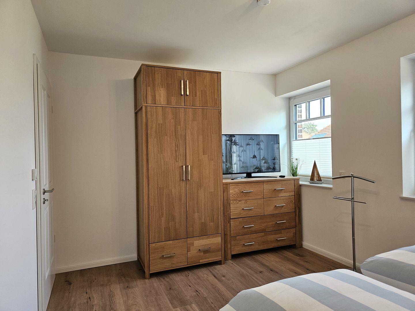 Das lichtdurchflutete Haus ist barrierearm gestaltet und rollstuhlfreundlich. Fünf Schlafzimmer mit Laminatboden bieten ausreichend Raum für Familien, Freunde oder kleine Reisegruppen und sorgen dank Sichtschutz an allen Fenstern für Privatsphäre. Drei moderne, bodengleiche Duschen sowie eine zusätzliche Badewanne und ein weiteres Gäste-WC verteilen sich auf insgesamt drei Badezimmer. Die Bäder sind mit warmem Wasser, Kosmetikspiegel und Haartrockner ausgestattet.