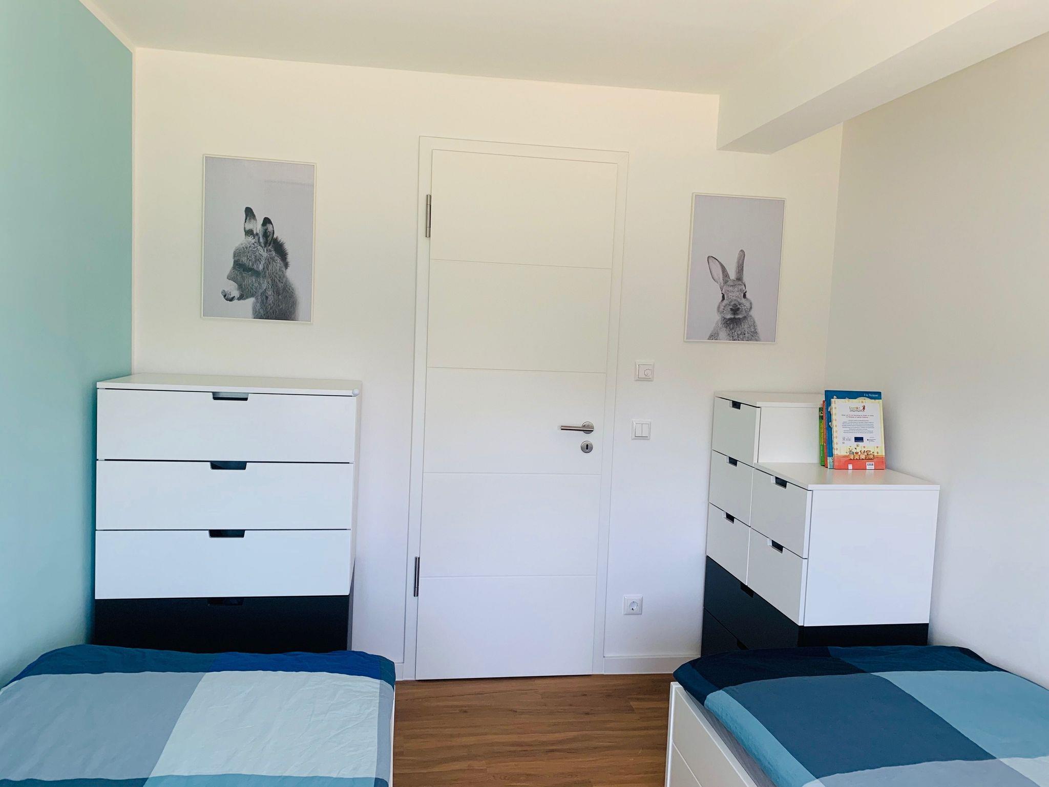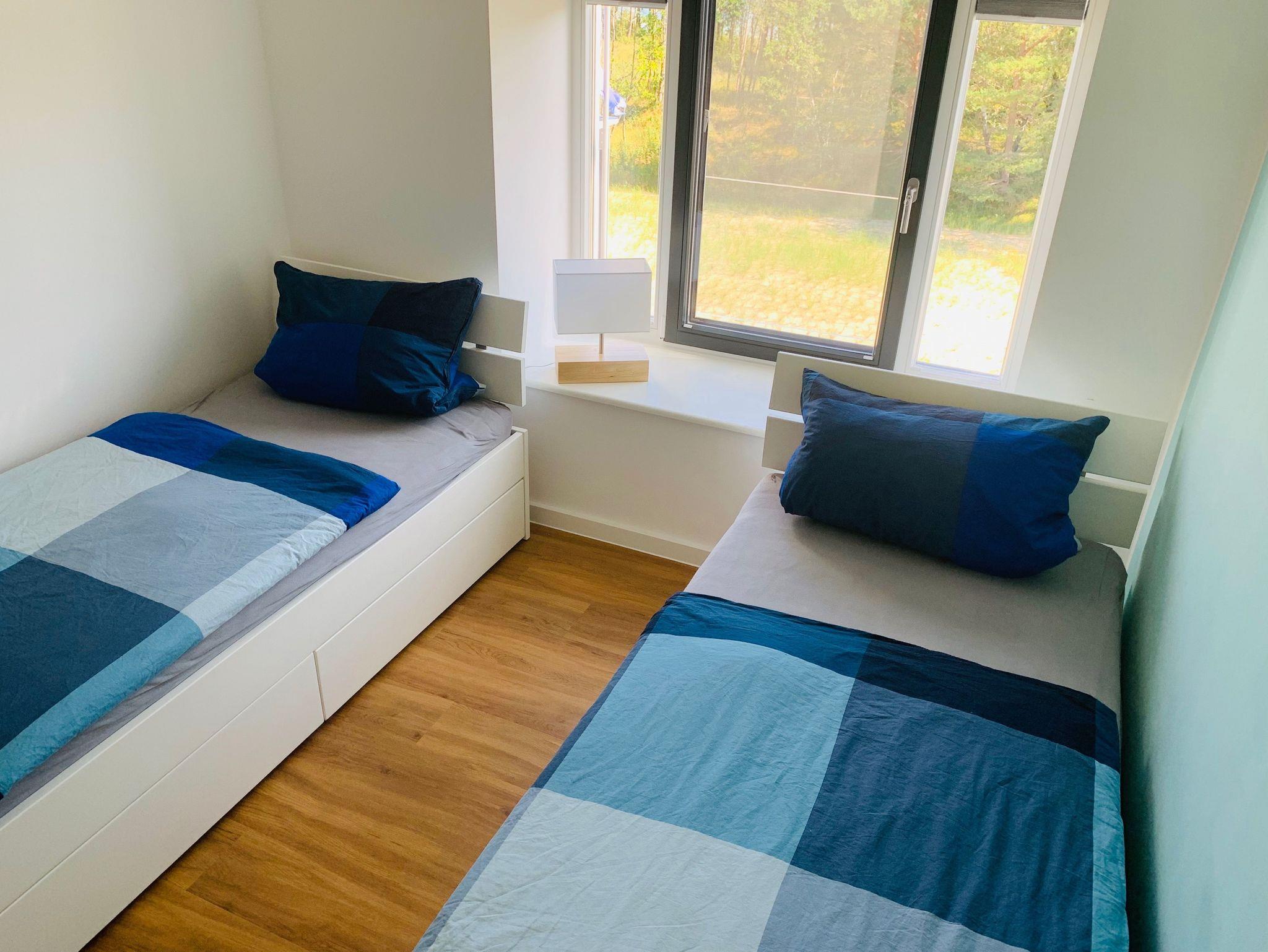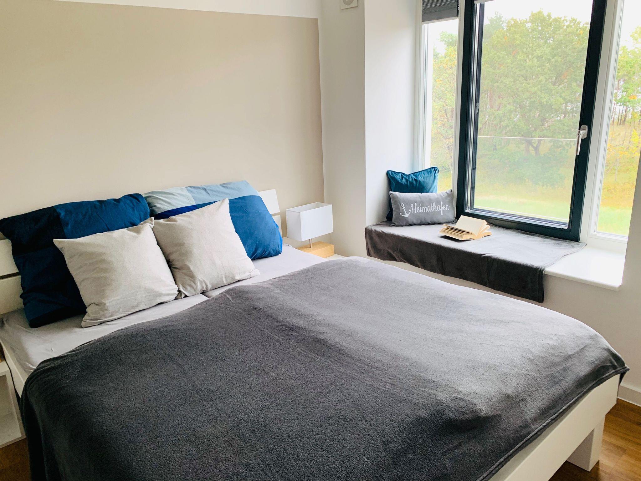 Die Ferienwohnung „Heimathafen Prora“ befindet sich im dritten Obergeschoss des Hauses Granitz, welche Sie bequem mit dem Fahrstuhl erreichen können. Es erwartet Sie ein modernes, helles und kinderfreundliches Urlaubsdomizil mit wunderschönem Blick auf die Ostsee und den angrenzenden Kiefernwald. Auf ca. 65 m² Wohnfläche bietet Ihnen die Wohnung ausreichende Platz für max. 2 bis 4 Erwachsene + 1 Kleinkind bis 3 Jahre. Der offene Wohnbereich ist mit einer gemütlichen Couch, einem Couchtisch, einer Stehlampe, einem Sideboard, einem Smart-TV mit Netflix Zugang, einem DVD-Player, einer Musikanlage sowie einem kostenloses WLAN ausgestattet. Von hier gelangen Sie auf Ihren bestuhlten Balkon (Nord/Ost) mit Sonnenschirm. Die angrenzende und moderne Küchenzeile ist mit einem Backofen, einem Cerankochfeld, einem Geschirrspüler, einem Kühlschrank mit Gefrierfach, einer Kaffeemaschine, einem Mixer, einem Wasserkocher, einem Toaster sowie umfangreichem Kücheninventar inklusive Kindergeschirr ausgestattet. Der große Esstisch komplettiert die Ausstattung. Das große Schlafzimmer verfügt über ein komfortables Doppelbett (1,80m x 2,00m) mit Nachttischablagen und Beleuchtung, verstellbare Lattenroste, eine Kleiderablage, ein Flachbild-TV und einen geräumigen Kleiderschrank. Im zweiten Schlafzimmer befinden sich zwei getrenntstehende Einzelbetten (je 0,90m x 2,00m) mit Nachttischablagen und Beleuchtung, verstellbare Lattenroste, eine Kleiderablage sowie ein Sideboard für Ihre Kleidung, Spielzeug und Vorlesebücher für die kleinen Gäste. Für einen erholsamen Schlaf tragen die Verdunklungsmöglichkeiten sowie die Insektenschutzgitter in den Schlafzimmern bei. Die beiden Schlafzimmer, der offene Wohnbereich und der Balkon sind so ausgerichtet, dass Sie jederzeit eine herrliche Aussicht genießen können. Das innenliegende Bad bietet Ihnen eine ebenerdige Dusche, ein WC, ein Waschtisch mit Spiegel, einen Fön sowie einen Handtuchhalter. Für einen zusätzlichen Komfort steht Ihnen in der wohnungseigenen Abstellkammer eine Waschmaschine sowie Reinigungsutensilien zur kostenlosen Nutzung zur Verfügung. Hier finden auch Ihre Koffer oder z.B. ein Kinderwagen bequem Ihren Platz. Für unsere kleinen Gäste steht Ihnen ein Hochstuhl sowie ein Kinderreisebett mit Matratze inklusive zur Verfügung. Max. 2 Haustiere mit eigenem Schlafplatz sind gern gesehene Gäste. Für Ihre mitgebrachten oder geliehenen Fahrräder steht ein abschließbarer Gemeinschaftsfahrradraum zur Verfügung. Ein PKW-Stellplatz (Heimathafen) befindet sich inklusive in unmittelbarer Nähe vom Haus Granitz. Die Erstausstattung eines Wäschepaketes (komplette Bettwäsche, 1 Duschhandtuch, 1 kleines Handtuch) können Sie bis 14 Tage vor Anreise gegen einen Aufpreis dazu buchen oder durch eigenes Ergänzen. Ab 2 gebuchten Paketen erhalten Sie einmalig 1 Geschirrhandtuch und 1 Duschvorleger hinzu.