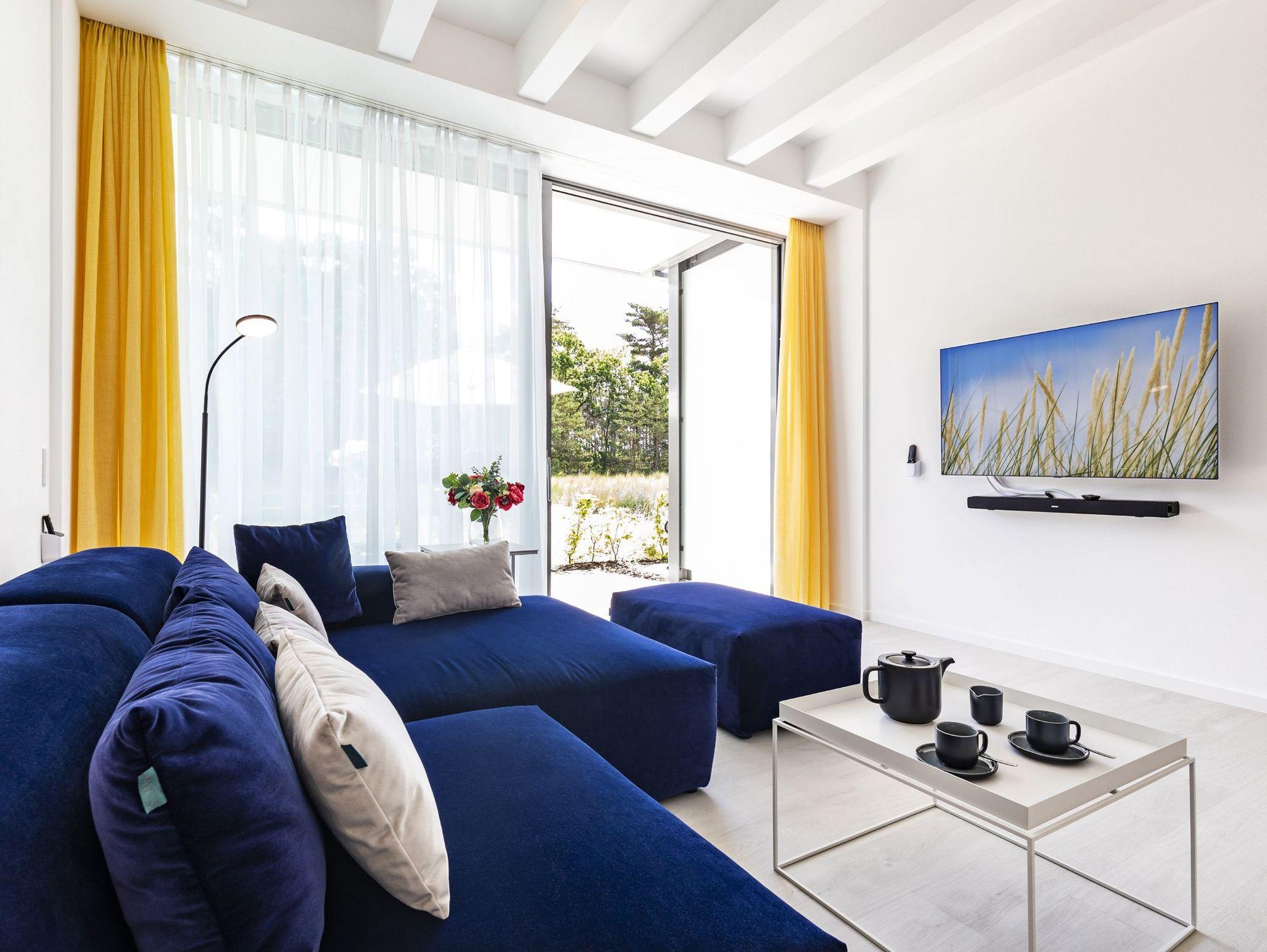 Die Wohnung Jasmund Beach in Binz bietet Luxus mit Sauna, Strandkorb und E-Ladestation direkt am Ostseestrand.
