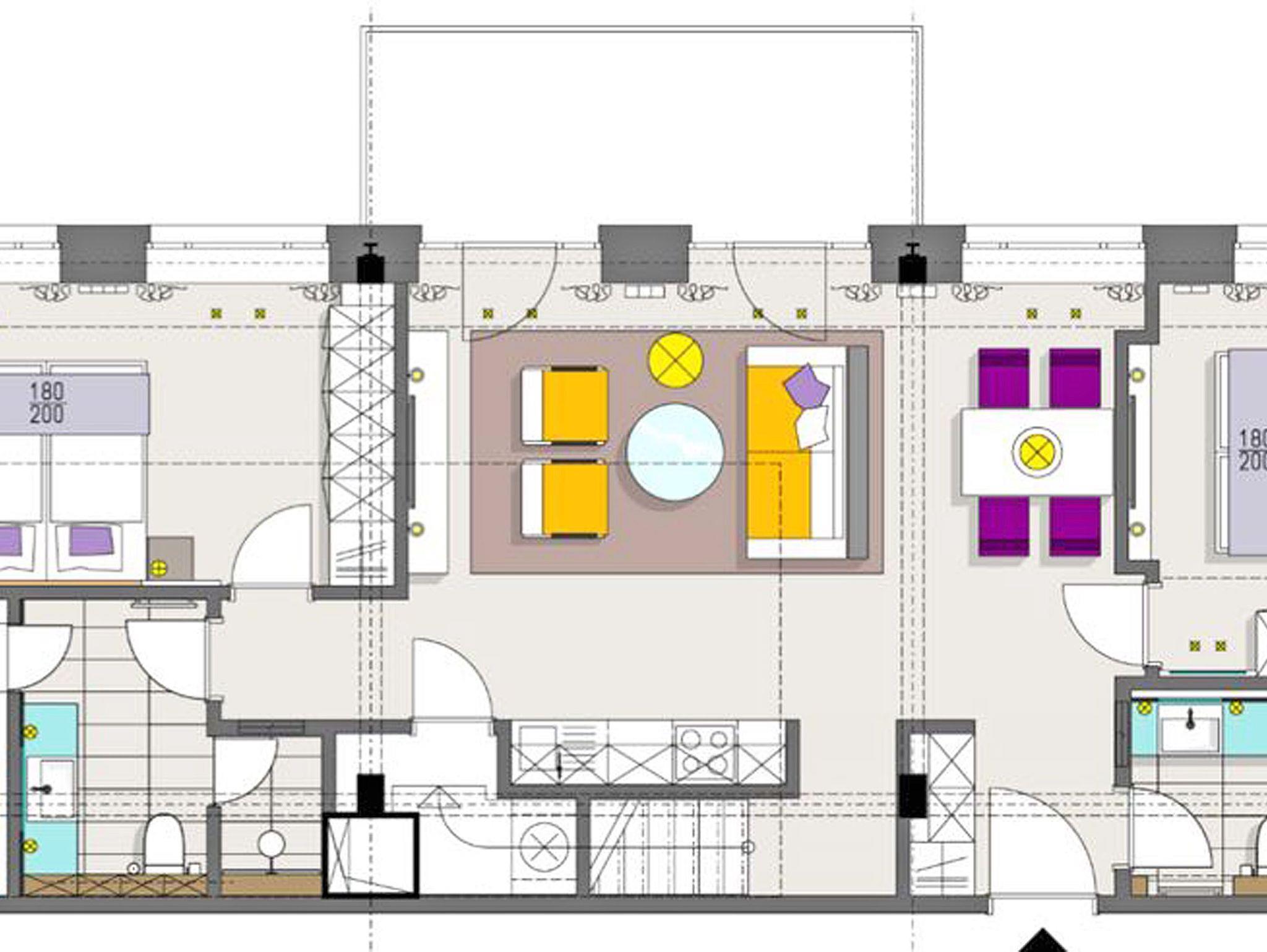 Diese einzigartige Penthouse-Appartement ist für 1-4 Personen ausgelegt und bietet bei Bedarf auch noch Platz für ein optional zubuchbares Kinderreisebettchen. Im Interesse aller nachfolgenden Gäste sind das Mitbringen von Haustieren sowie das Rauchen in den Innenräumen nicht gestattet.