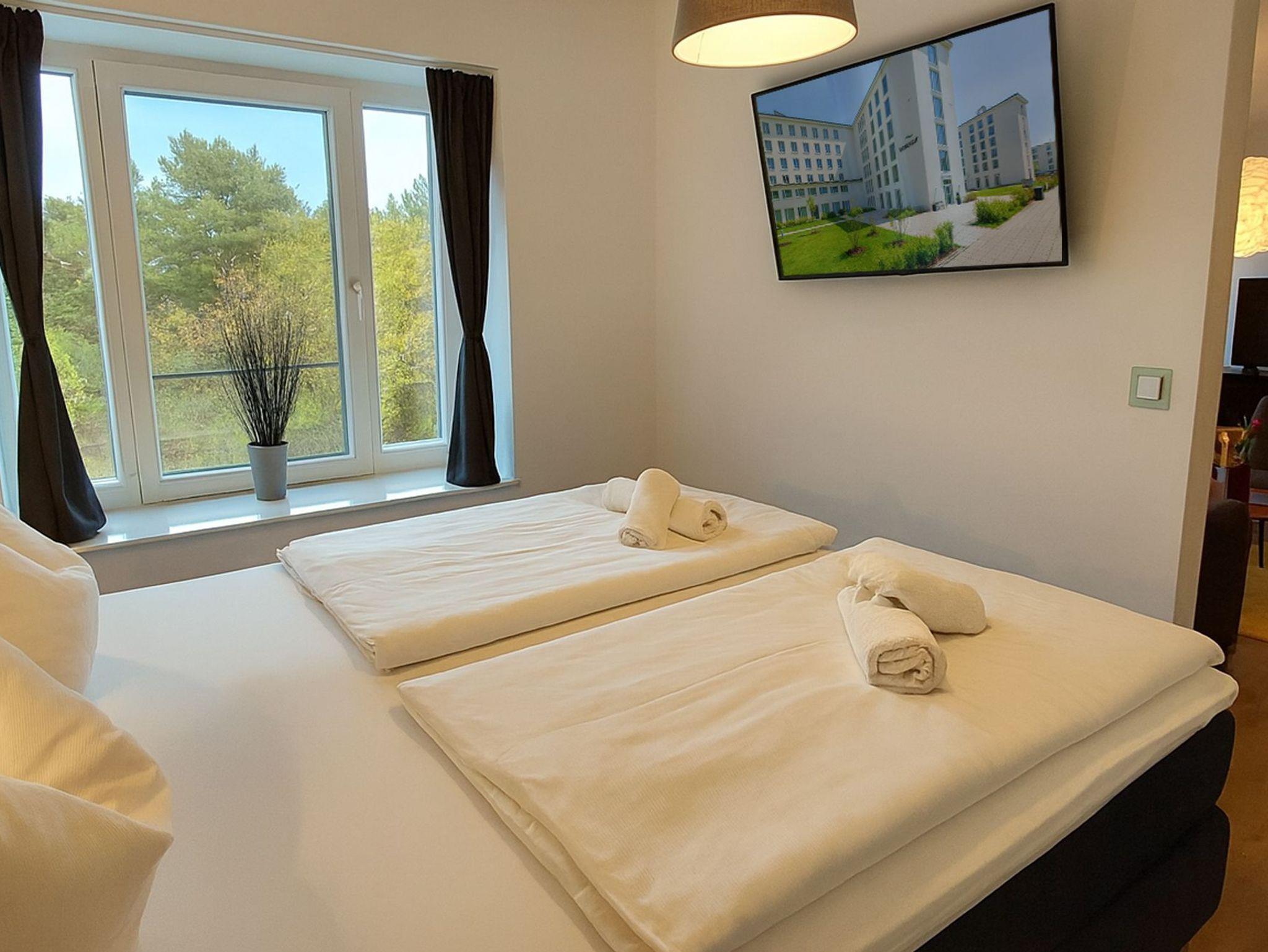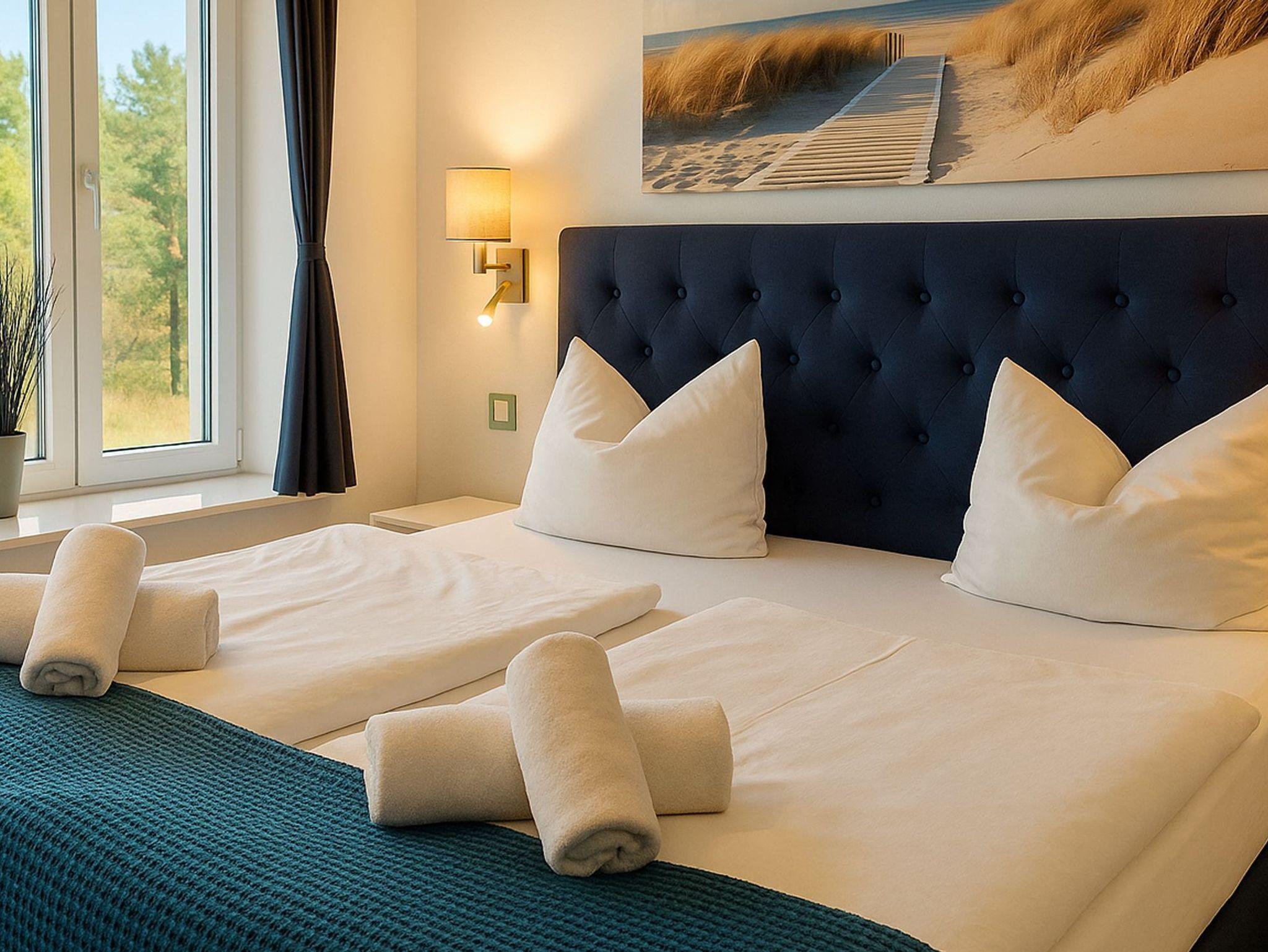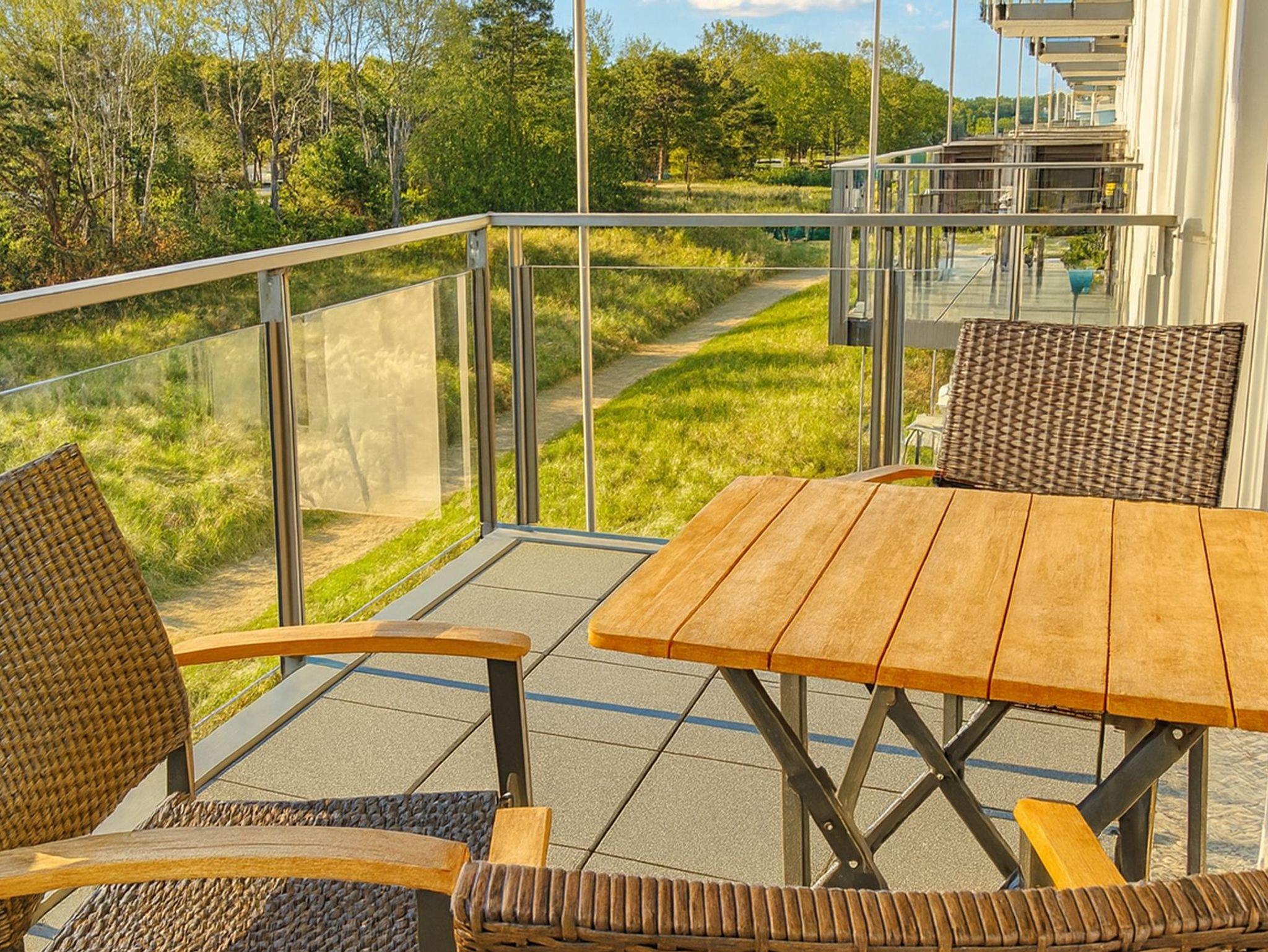 Moderne Nichtraucherwohnung mit Balkon und Blick auf Küstenwald nahe Strand und Wanderwegen in Binz.