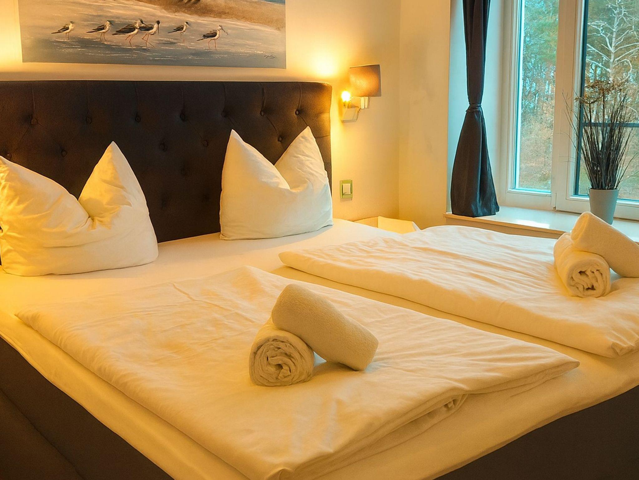 Das Wohn- und Esszimmer ist das Zentrum der Wohnung und lädt mit einer ausklappbaren Sofalandschaft zum Entspannen ein. Für Unterhaltung bei jedem Wetter gibt es einen Smart-TV und kostenfreies WLAN. Der Essbereich bietet Platz für 6 Personen und vom möblierten und überdachten Balkon aus hat man einen Blick auf den angrenzenden Küstenwald und die Ostseedünen.