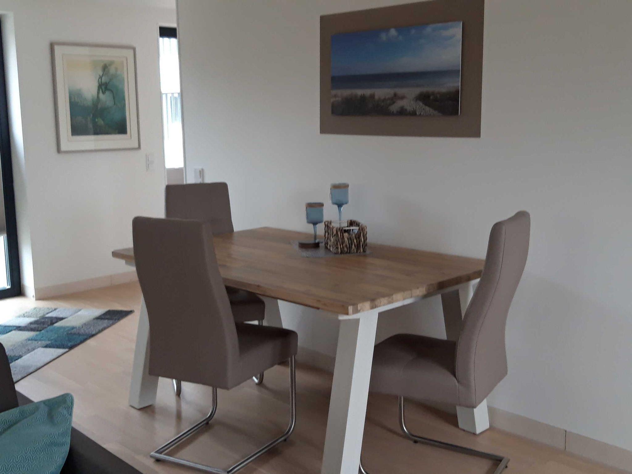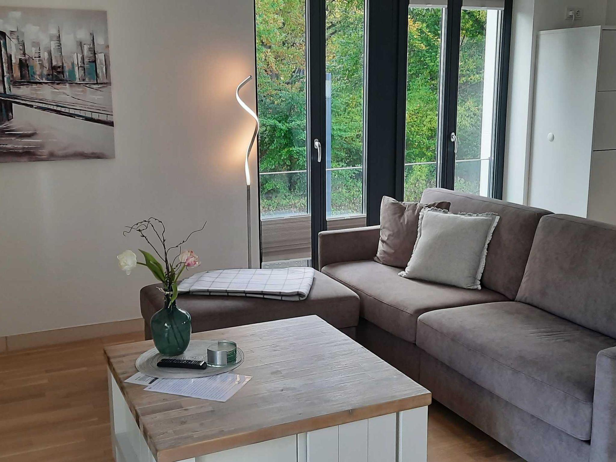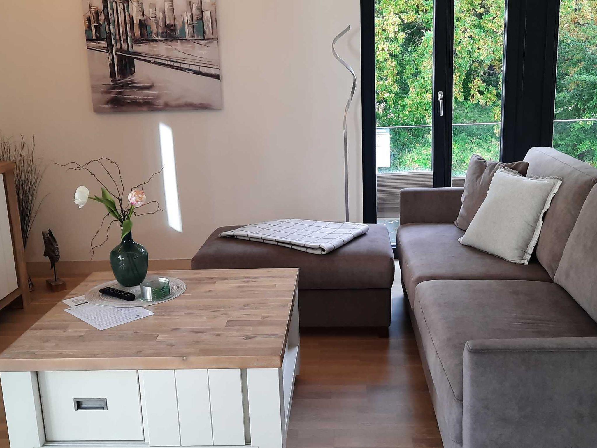 Im Wohnzimmer finden auf dem ausklappbaren Sofa (separater Lattenrost + Matratze) die 3./4. Person ihren Schlafplatz. Weitere Ausstattung sind hier ein modernes Curved Smart TV, Blue-Ray Player sowie WLan in der gesamten Wohnung.