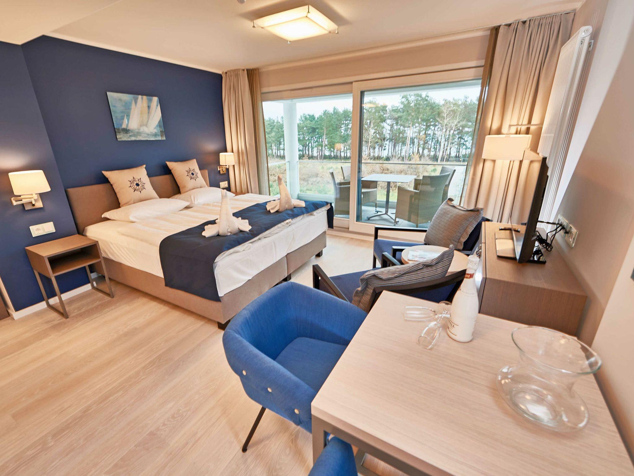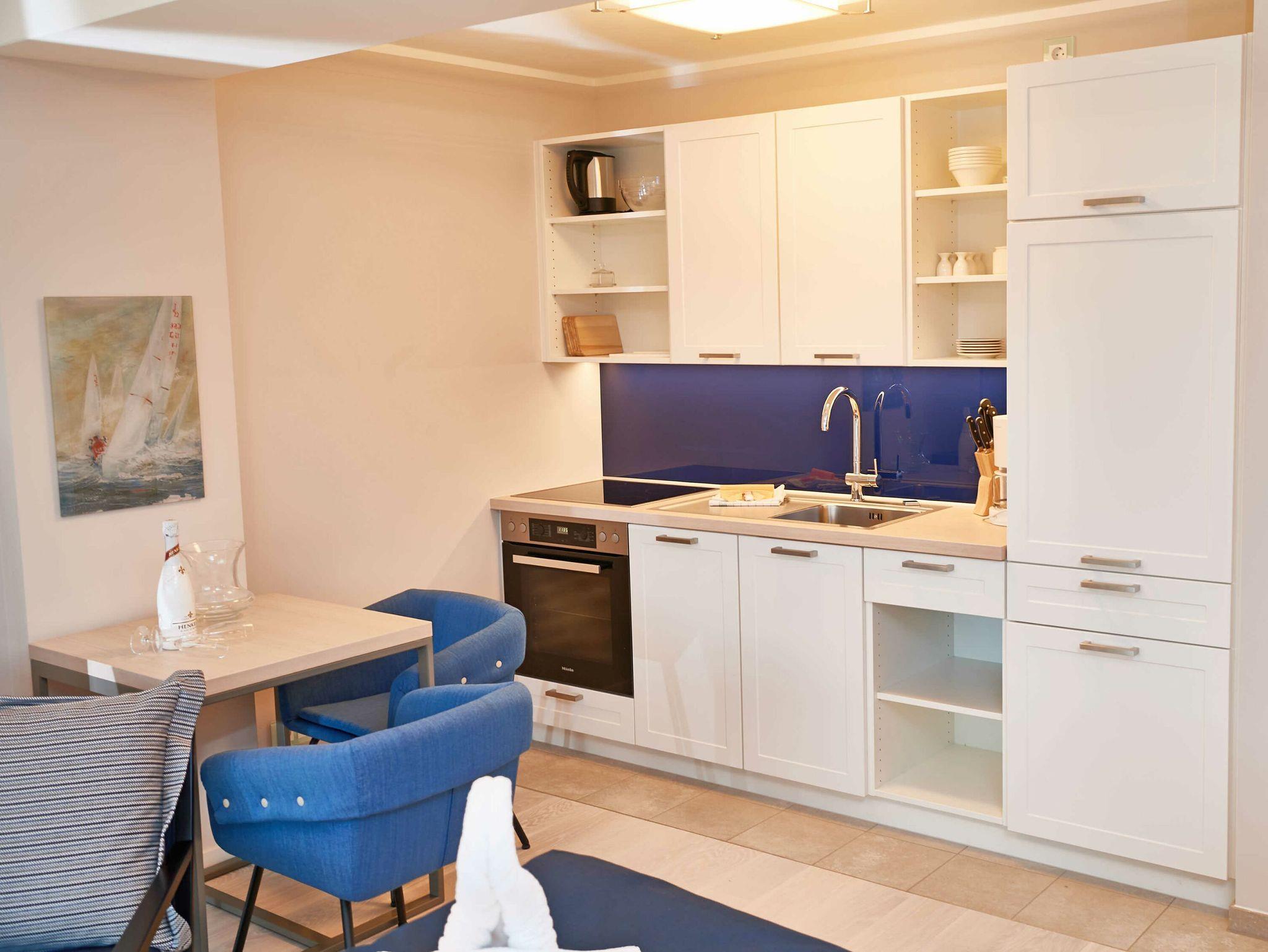 Modern eingerichtetes 1-Zimmer-Appartement mit Ostseeblick und eigenem Strandkorb in Binz-Prora.