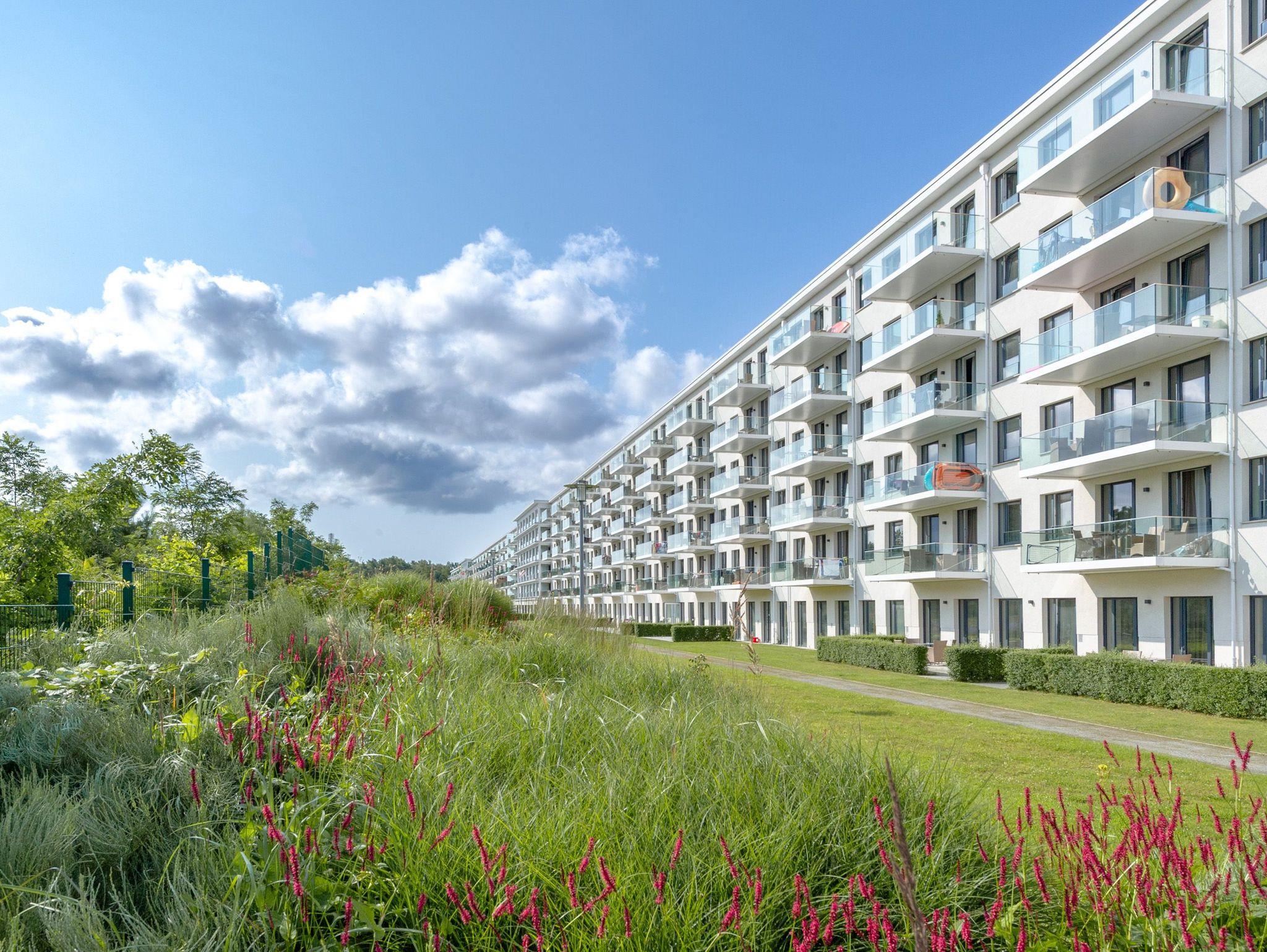 Moderne 2-Zimmer-Wohnung mit Meerblick, Balkon und kostenfreiem WLAN im Strandresort Prora, nur 50 m vom Strand entfernt.