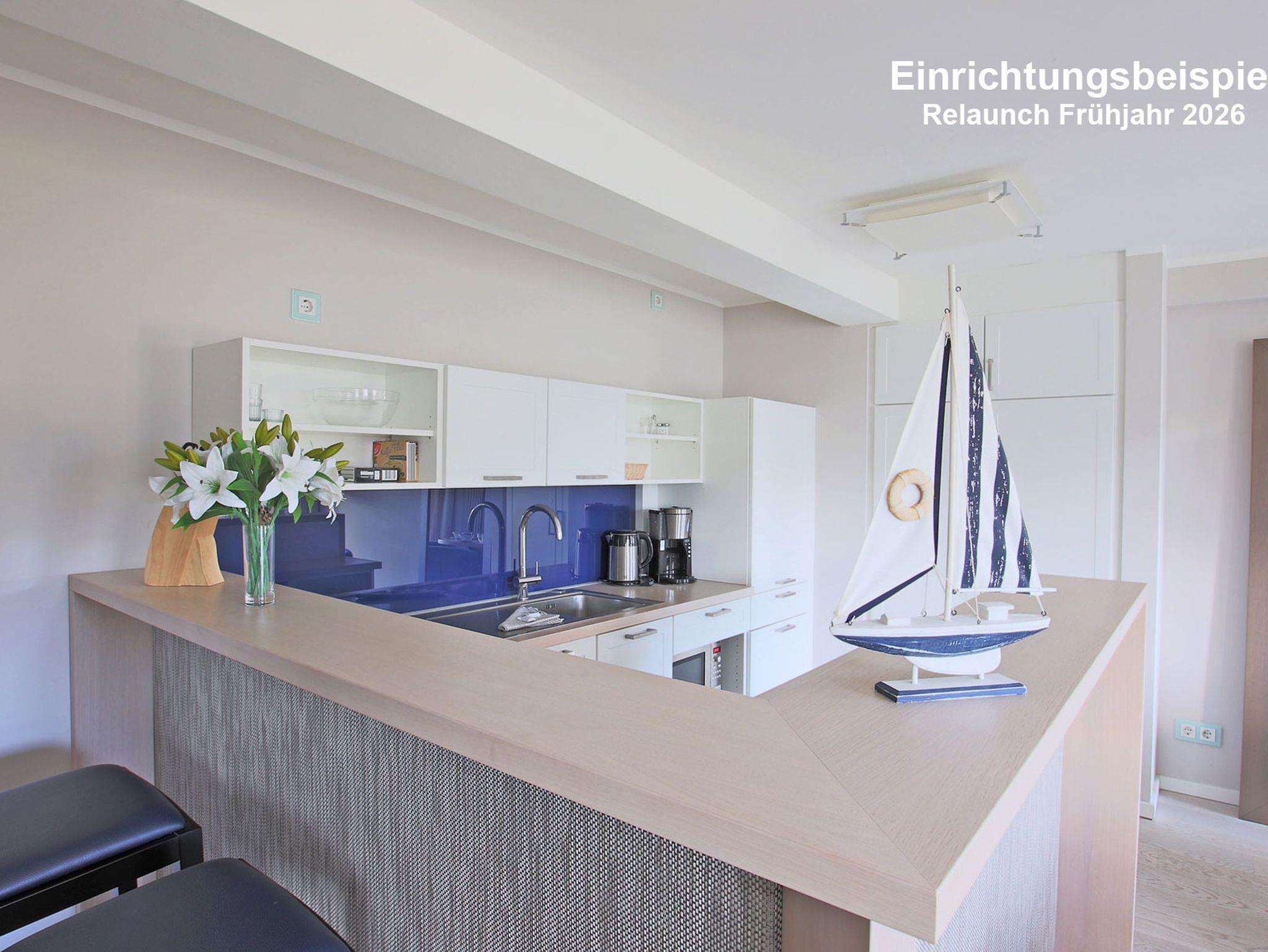 Bequeme Polstermöbel, ausgesuchte Dekorationen, angenehme Beleuchtung und moderne Unterhaltungstechnik - in der Wohnung 213 wurde an alles gedacht. Herzstück Ihres Zuhauses auf Zeit ist das kombinierte Wohn- und Esszimmer mit integrierter Küche und dem vorgelagerten Balkon. Frühstück mit Morgensonne und Wellenrauschen - kann ein Tag schöner beginnen? Wenn das Wetter mal nicht so mitspielt, können Sie natürlich auch drinnen am Esstisch speisen.