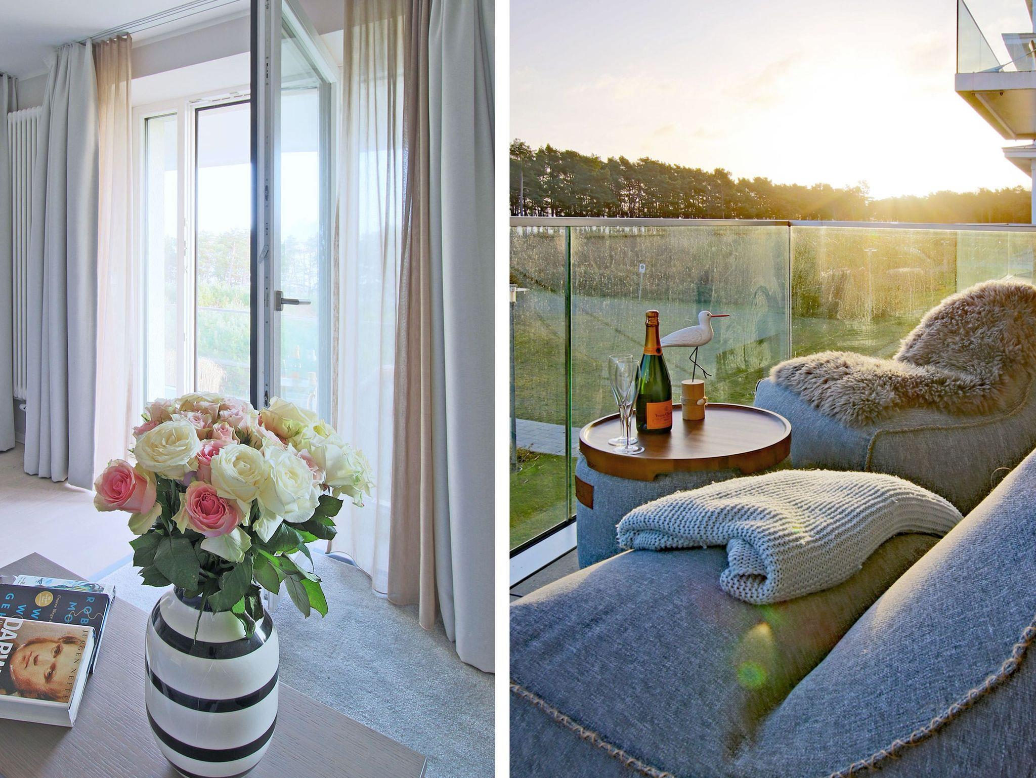 Bequeme Polstermöbel, ausgesuchte Dekorationen, angenehme Beleuchtung und moderne Unterhaltungstechnik - in der Wohnung 213 wurde an alles gedacht. Herzstück Ihres Zuhauses auf Zeit ist das kombinierte Wohn- und Esszimmer mit integrierter Küche und dem vorgelagerten Balkon. Frühstück mit Morgensonne und Wellenrauschen … - kann ein Tag schöner beginnen? Wenn das Wetter mal nicht so mitspielt, können Sie natürlich auch drinnen am Esstisch speisen.