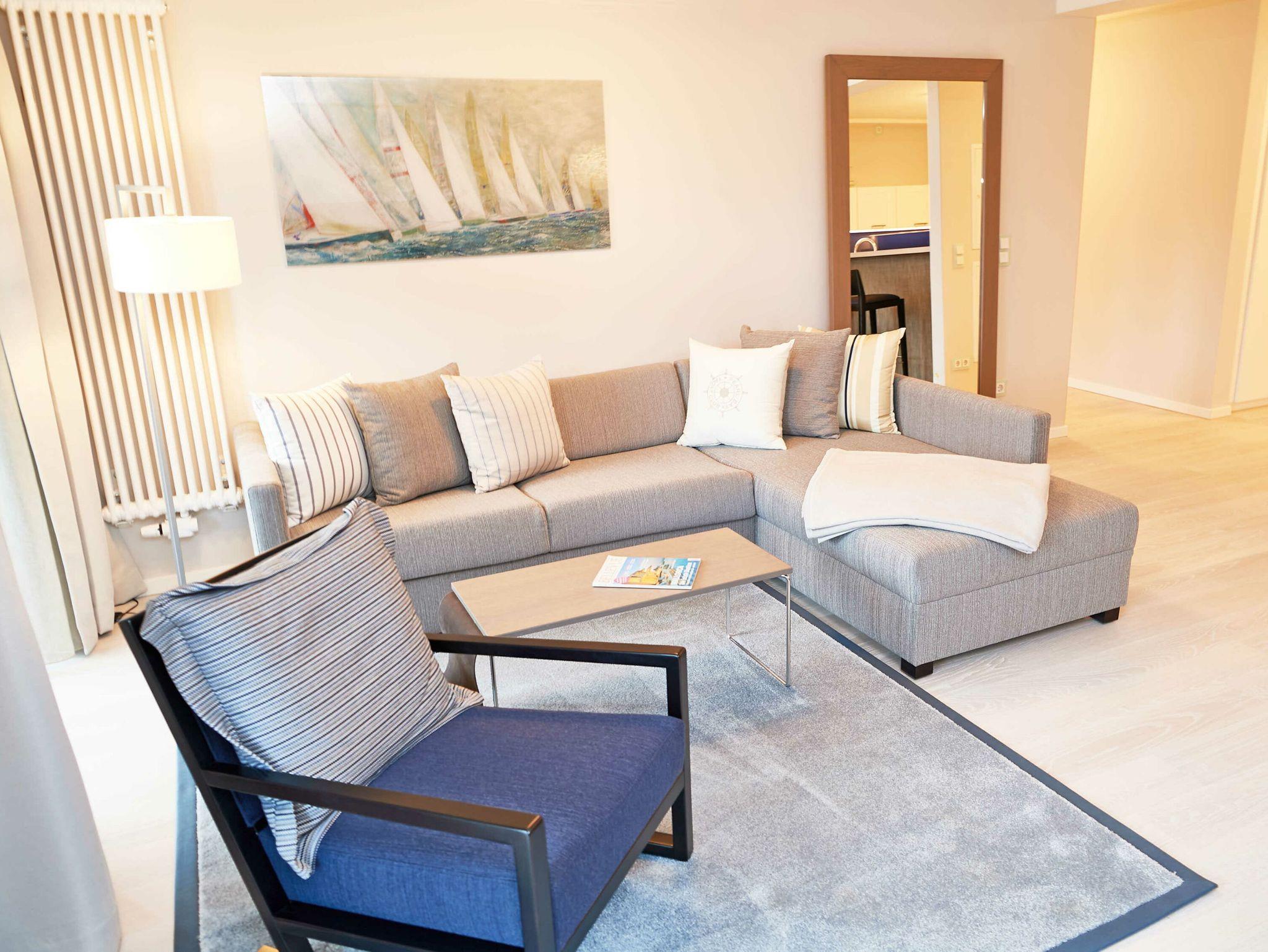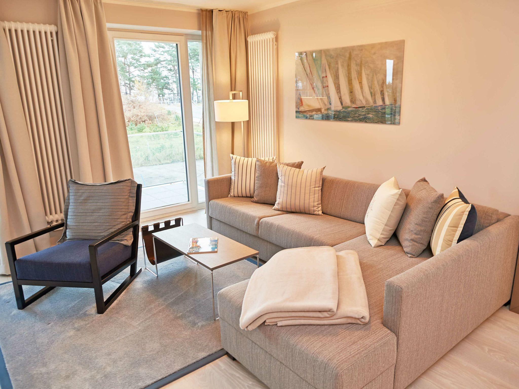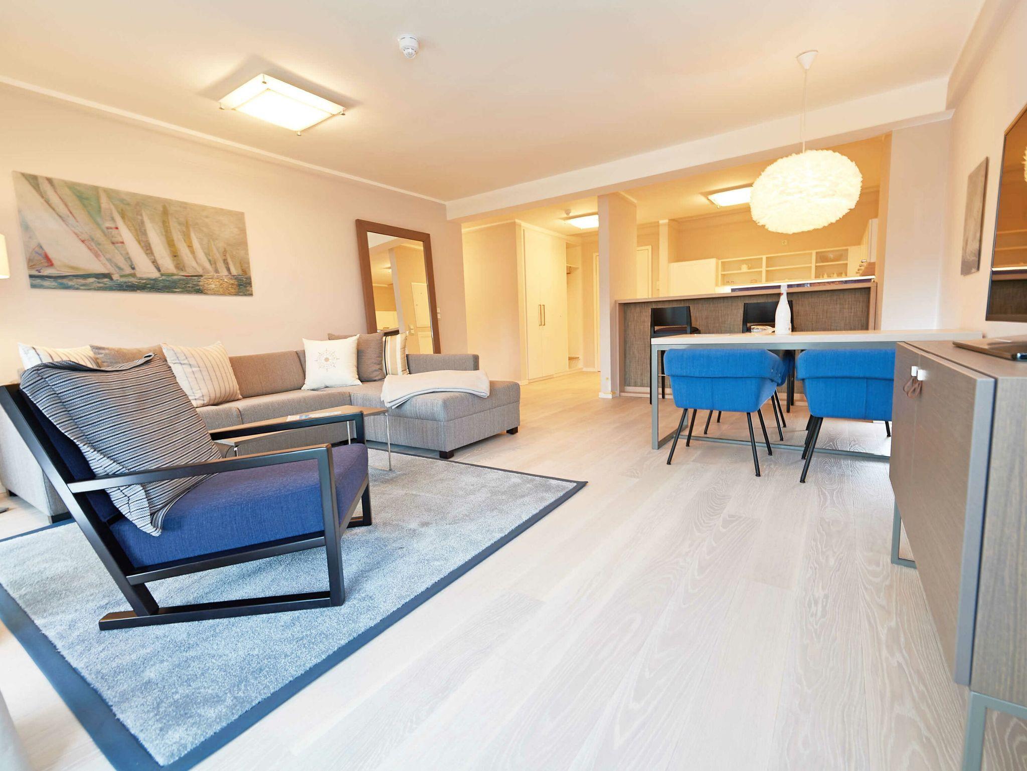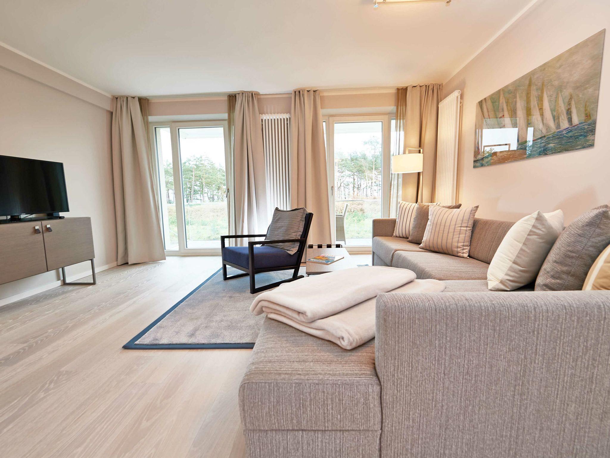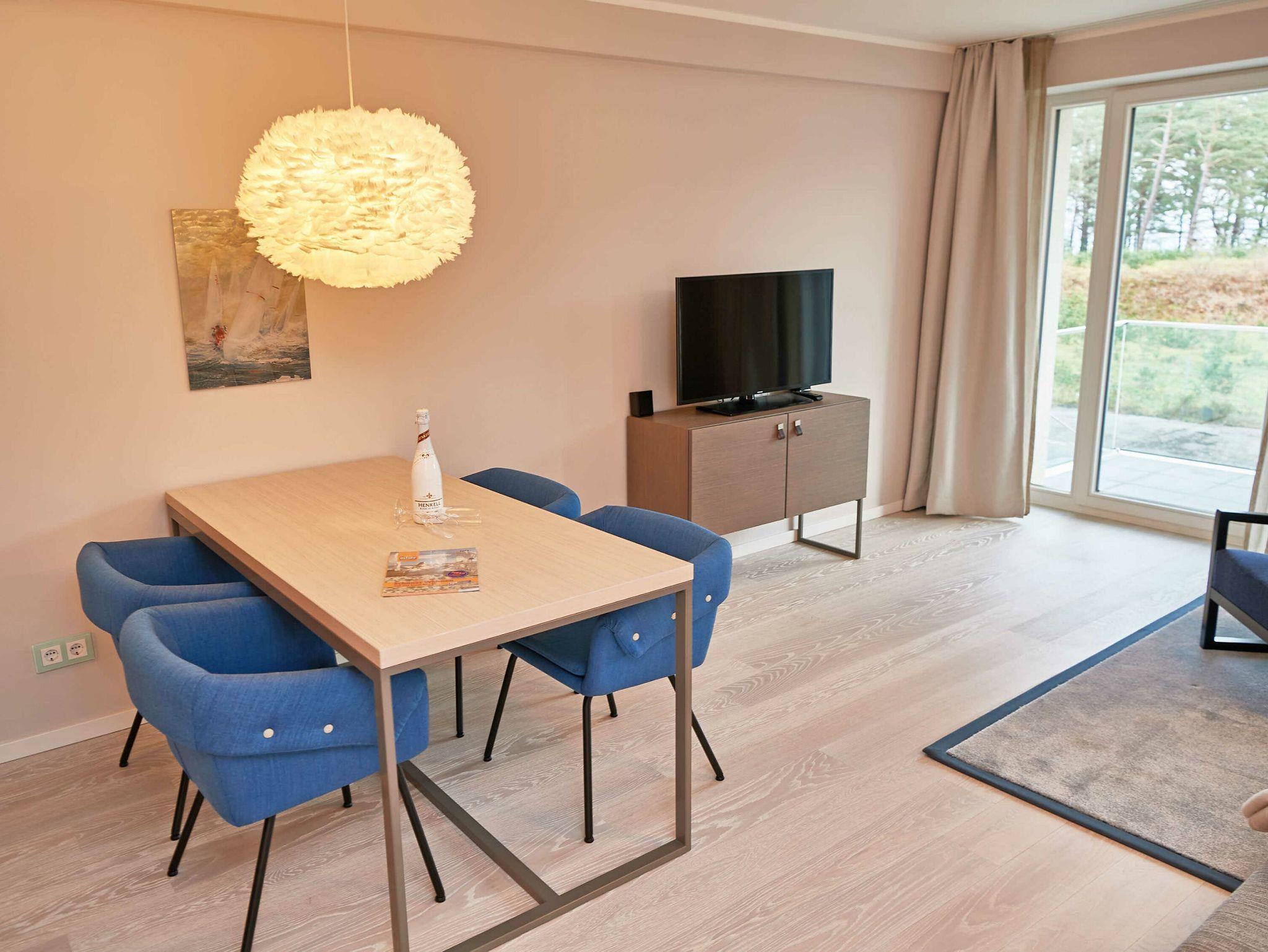 Modernes 3-Raum-Appartement mit Balkon und Meerblick in Binz-Prora, ideal für erholsame Tage am Strand.