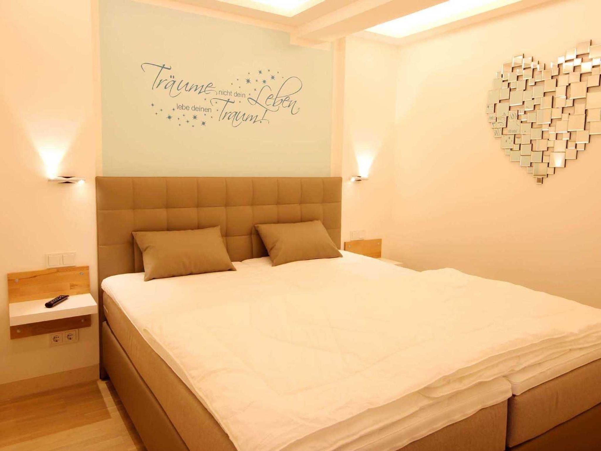 Der kleine Schlafraum, erreichbar über eine Schiebetür, liegt im Inneren der Wohnung. Hier beschert Ihnen ein neues Boxspringbett himmlische Träume nach ereignisreichen Tag-Erlebnissen (Ein Kinderreisebett findet dort keinen Platz) . Darüber hinaus befindet sich auch hier ein Flachbildfernseher.