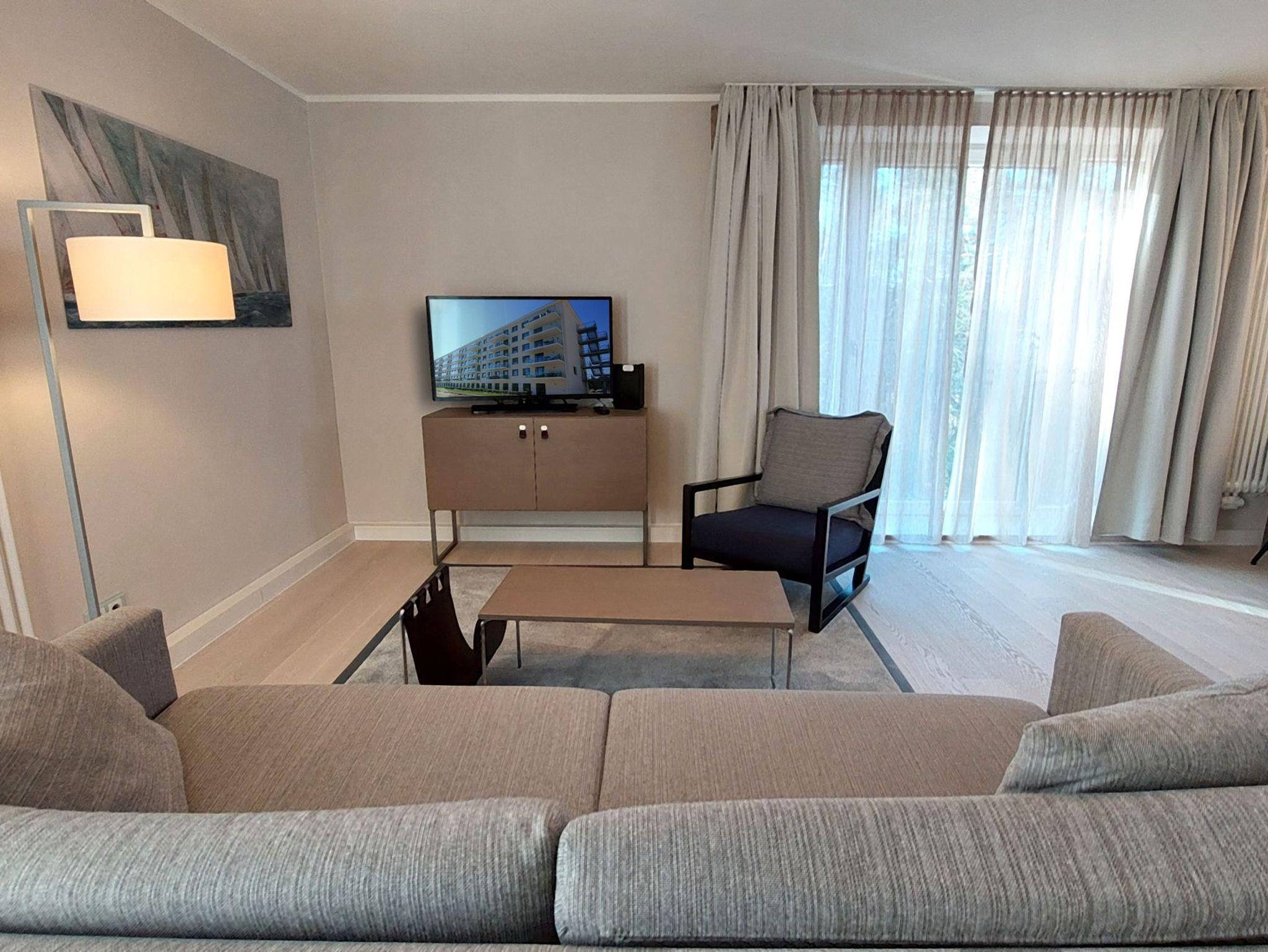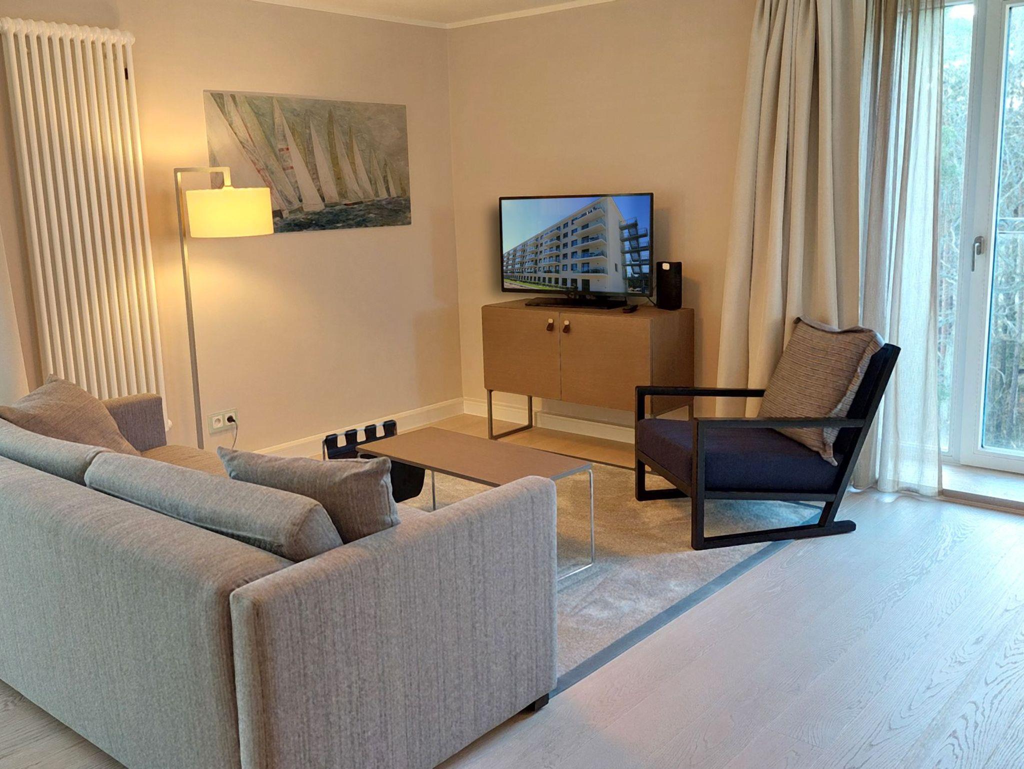 Modernes, lichtdurchflutetes Apartment in Binz mit Aufzug und Balkon, ideal für einen erholsamen Urlaub am Meer.
