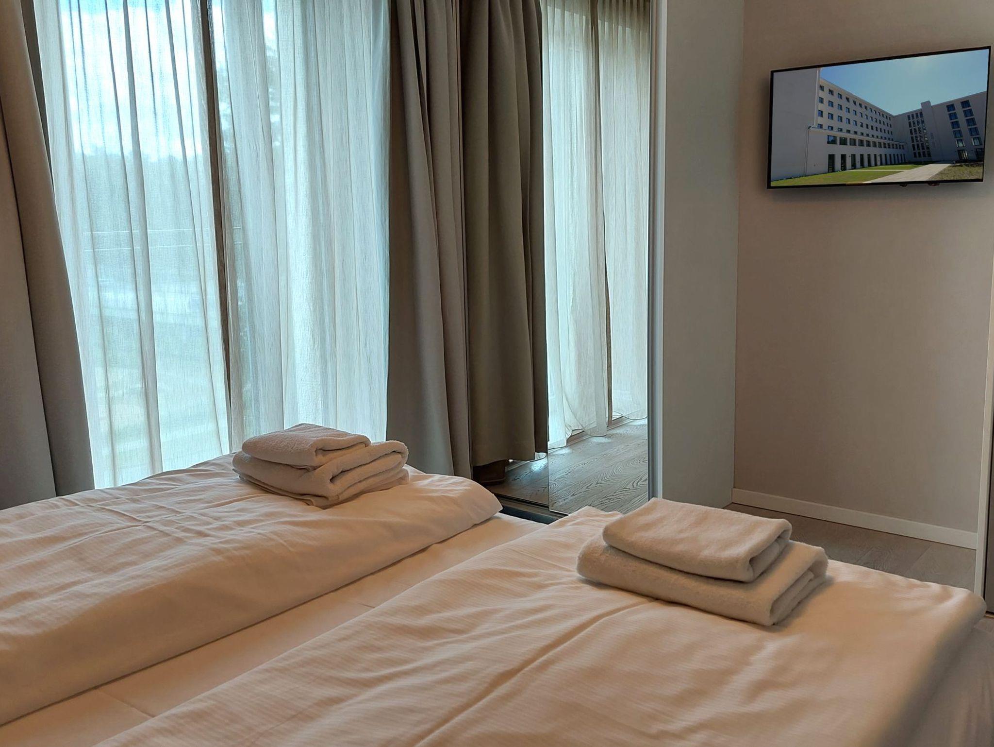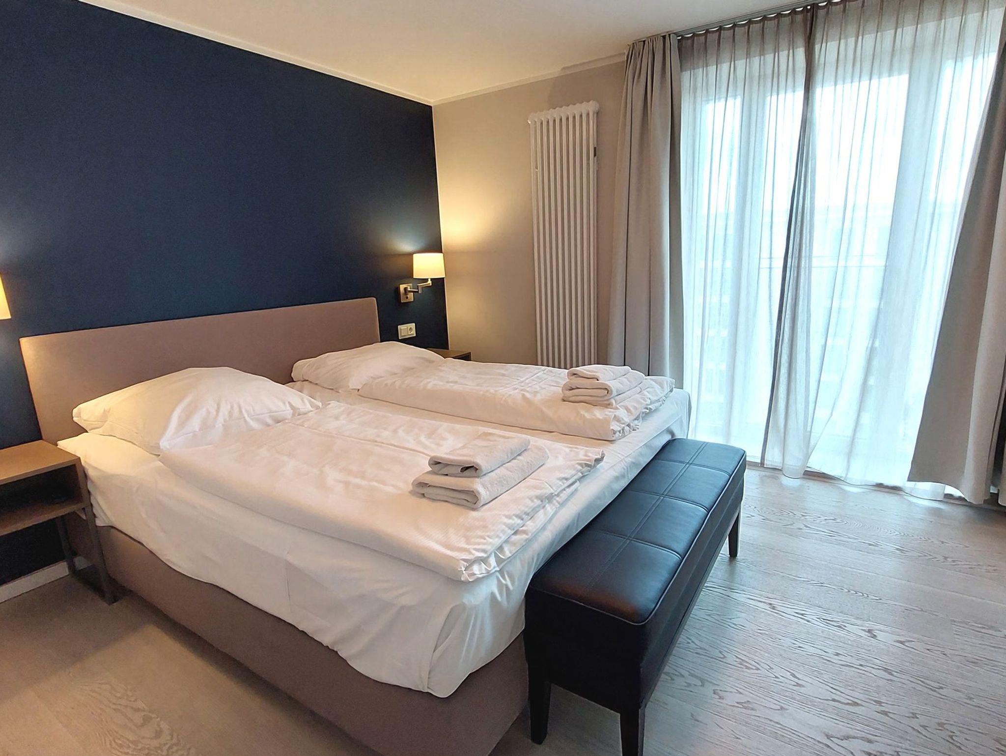 Die helle 2-Raum-Nichtaucherwohnung 104RB519 befindet im 5. Obergeschoss des Aufgangs 105 (Block I) und ist bequem per Fahrstuhl zu erreichen. Das Apartment ist zur Landseite ausgerichtet und somit, durch die zahlreichen fußhohen Fenster (franz. Balkone) den ganzen Tag lichtdurchflutet. Diese Unterkunft ist für 2 Personen optimal ausgelegt, aber auch 1-2 zusätzliche Kinder würden hier problemlos unterkommen.