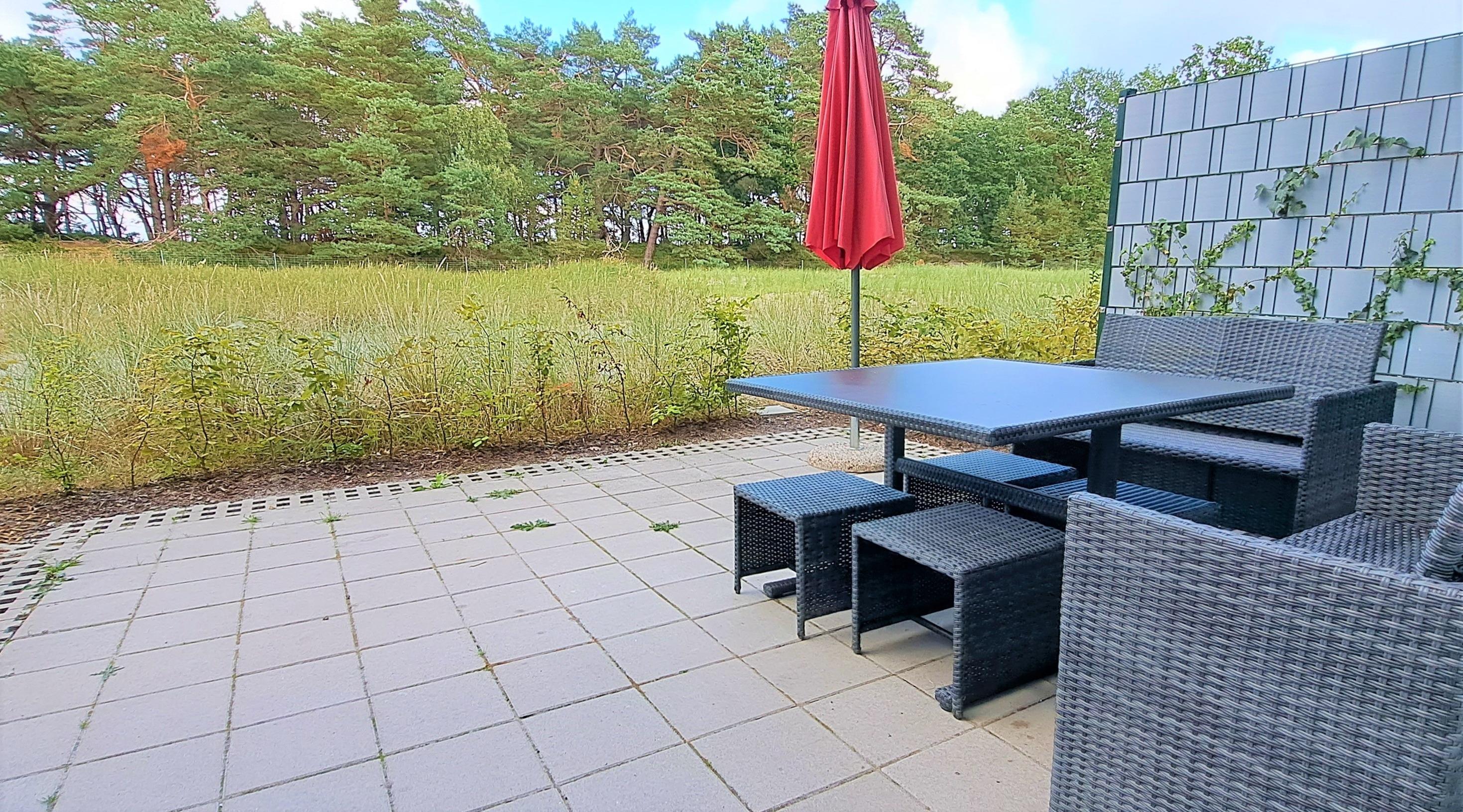 - Terrasse mit Tisch und Stühlen