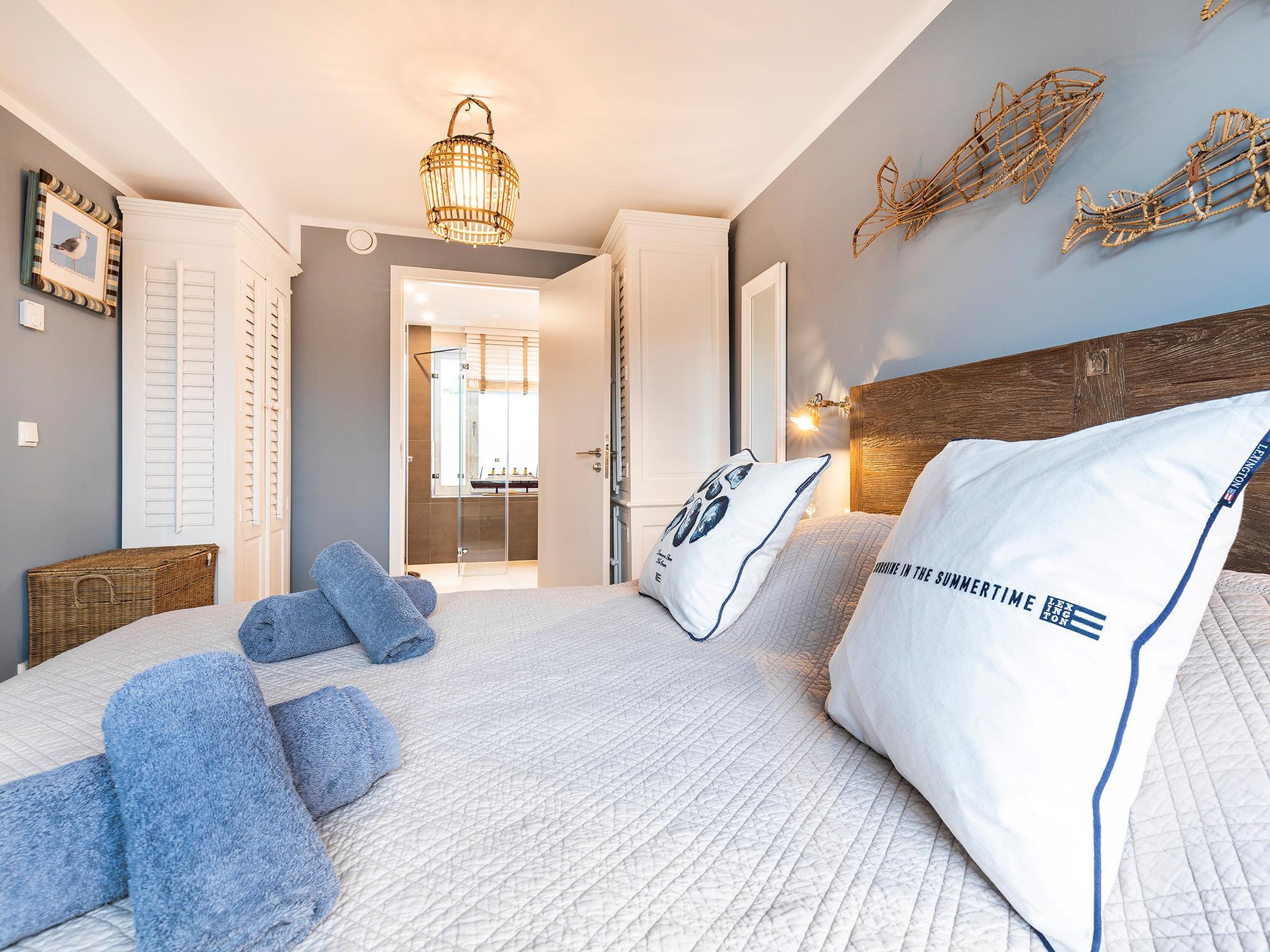 "Aquarius" ist 85 qm groß, verfügt über 2 separate Schlafzimmer mit 2 vollwertigen Bädern (das größere mit Tageslicht) , und ist für maximal 4 Erwachsene oder eine Familie mit 2 Eltern und bis zu drei Kindern buchbar. Bitte beachten Sie: Im 2. Schlafzimmer befindet sich über dem Doppelbett ein Hochbett, das wegen der schwierigen Erreichbarkeit über eine Leiter und der geringen Deckenhöhe nur für größere Kinder geeignet ist.