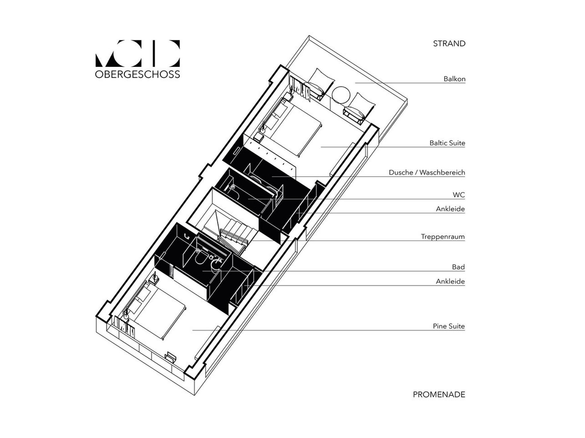 Modernes VOID Apartment in Prora mit Meerblick, Sauna und minimalistischer Eleganz auf drei Etagen.