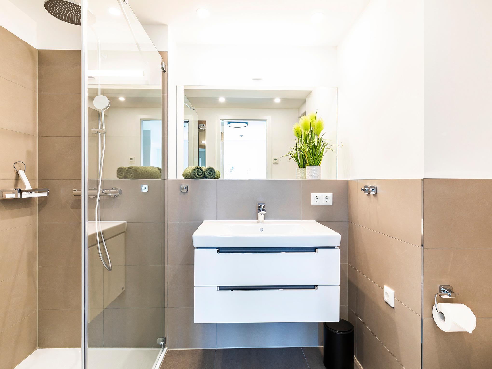 zu vier Personen. Zwei vollausgestattete Bäder mit Regenduschen verhindern Wartezeiten,