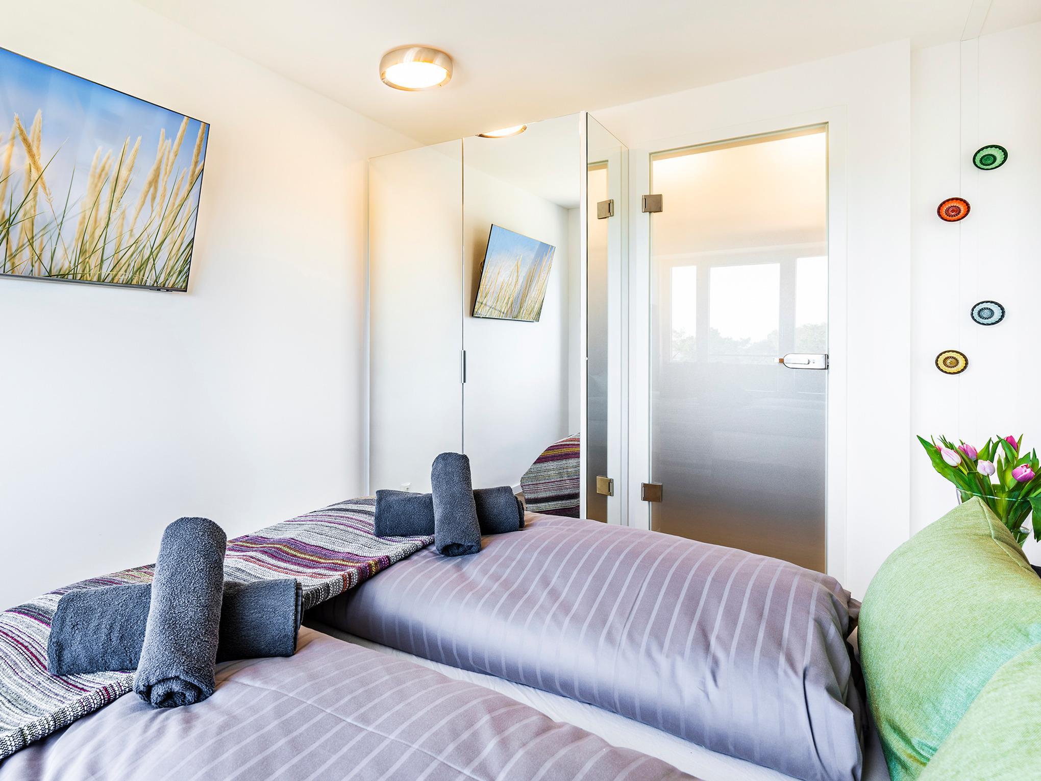 Zwei individuell eingerichtete Schlafzimmer verfügen jeweils über ein Duschbad en Suite und dank motorisierter Lattenroste loggen Sie sich in bequemster Liegeposition in Ihr Smart-TV-Programm ein. Möchten Sie ein TV-Event lieber mit Ihren Mitreisenden teilen, machen Sie es sich im Wohnzimmer auf Sofa und Drehsesseln vor dem großen Fernseher gemütlich.