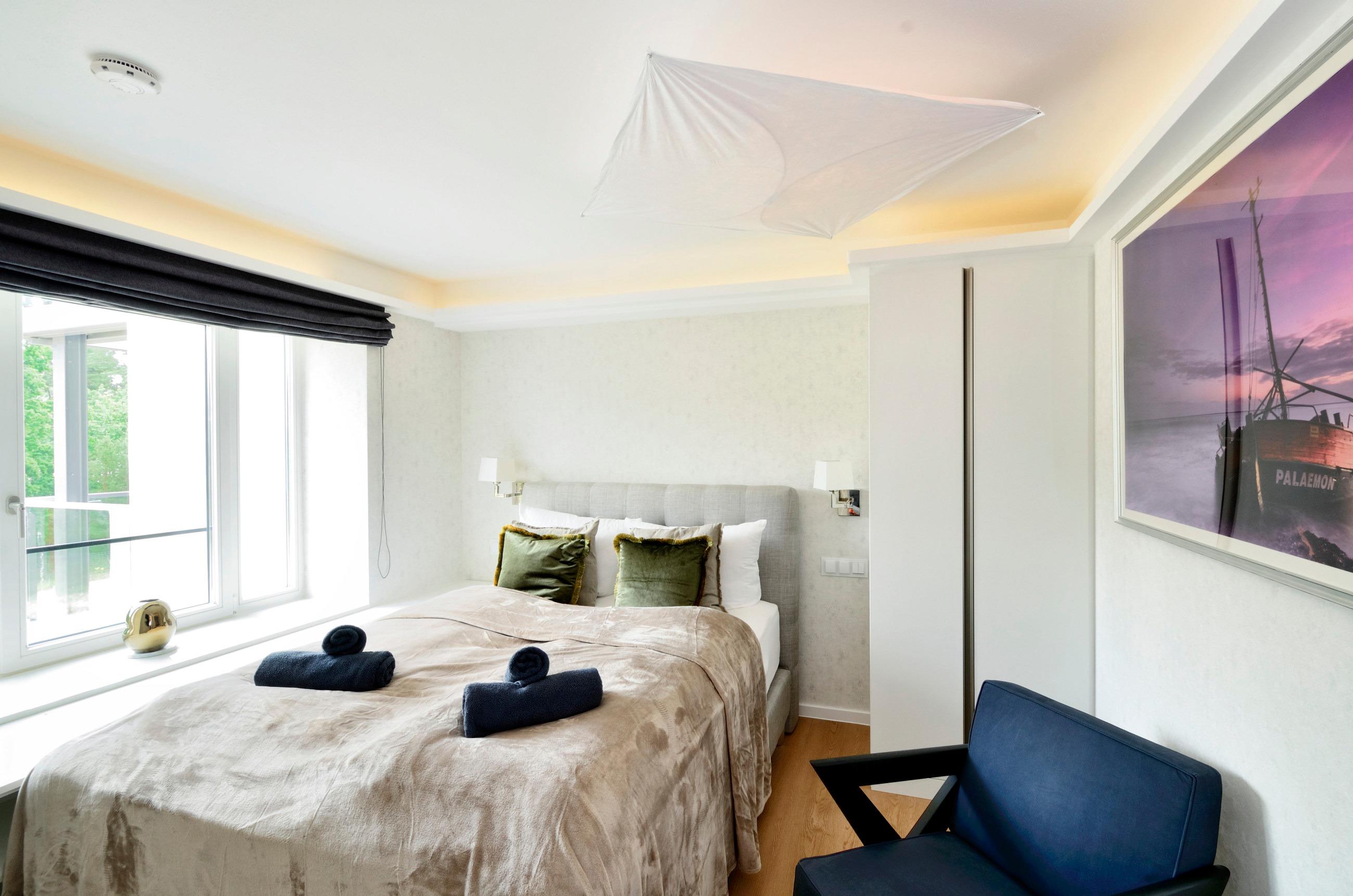 Moderne Ferienwohnung in Prora mit Meerblick, Sauna, Balkon und hochwertiger Ausstattung für erholsamen Urlaub.
