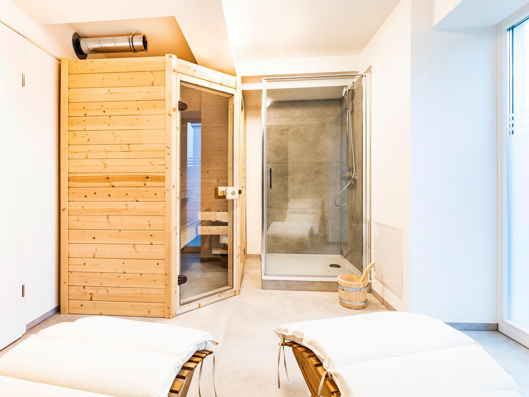 - Private Sauna mit 2 Liegen und Dusche im separaten Raum mit Blick Richtung Strandpromenade