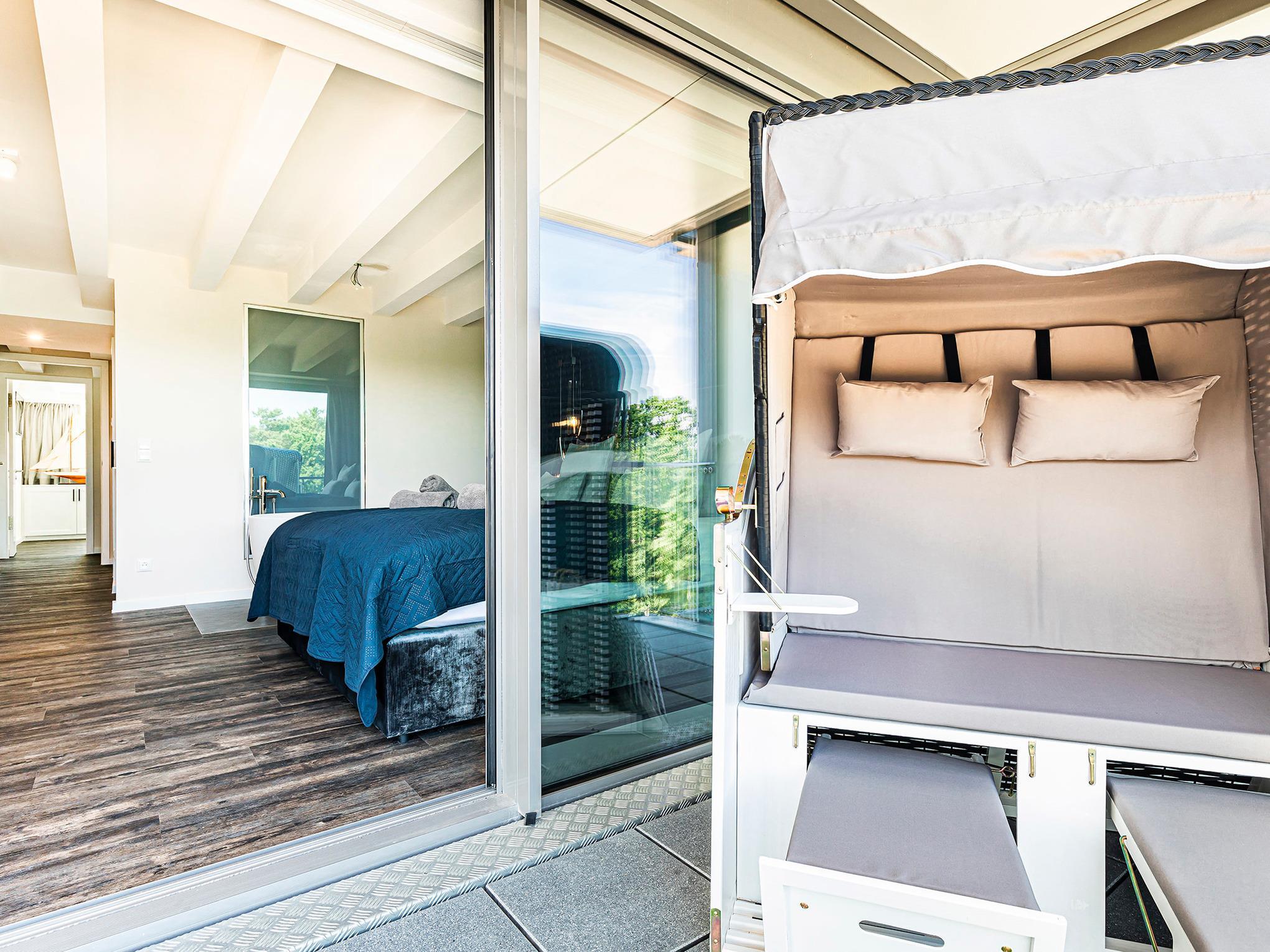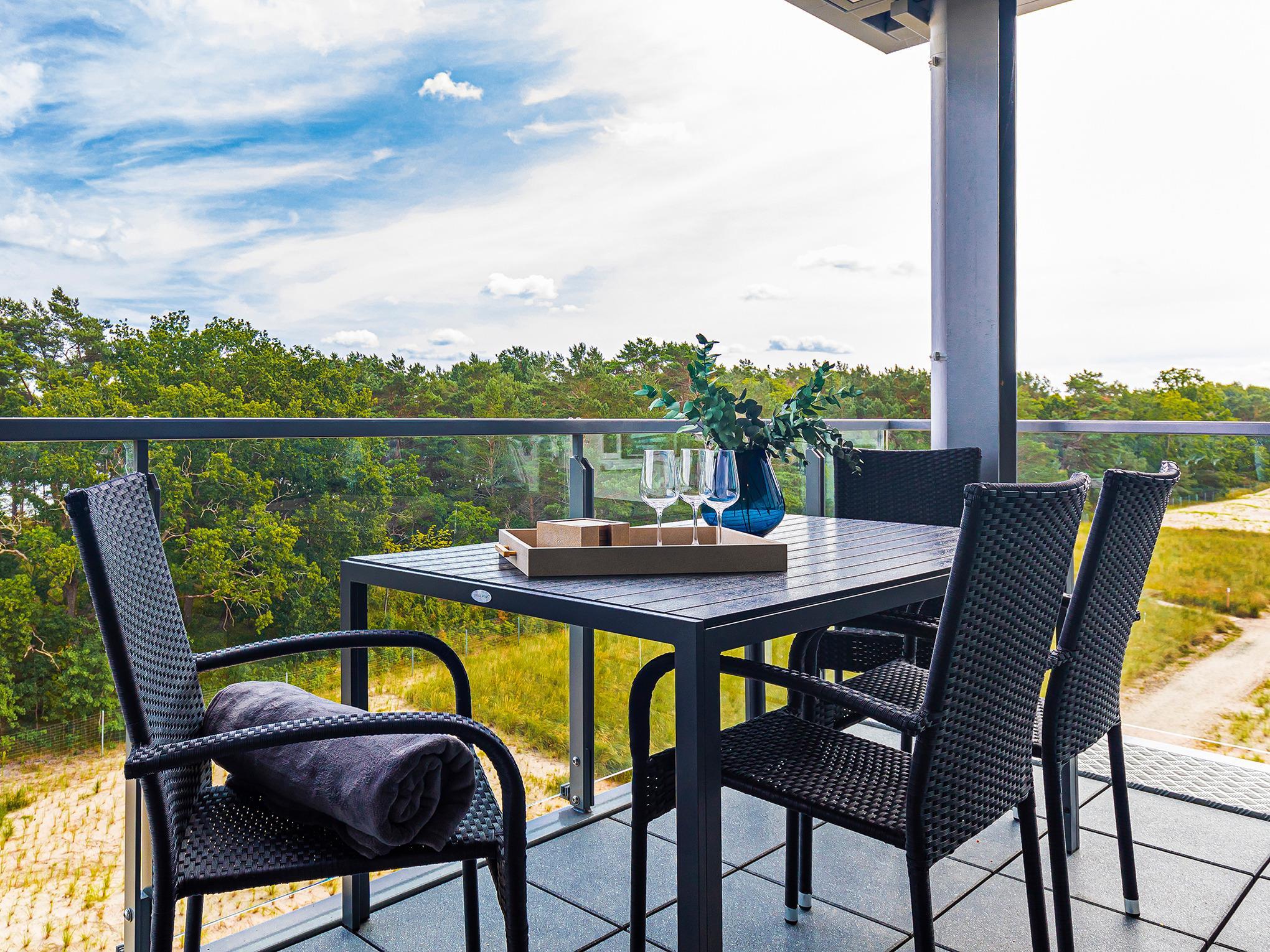 Moderne Ferienwohnung in Binz-Prora mit Meerblick, Sauna, Balkon, Strandzugang und E-Ladestation.