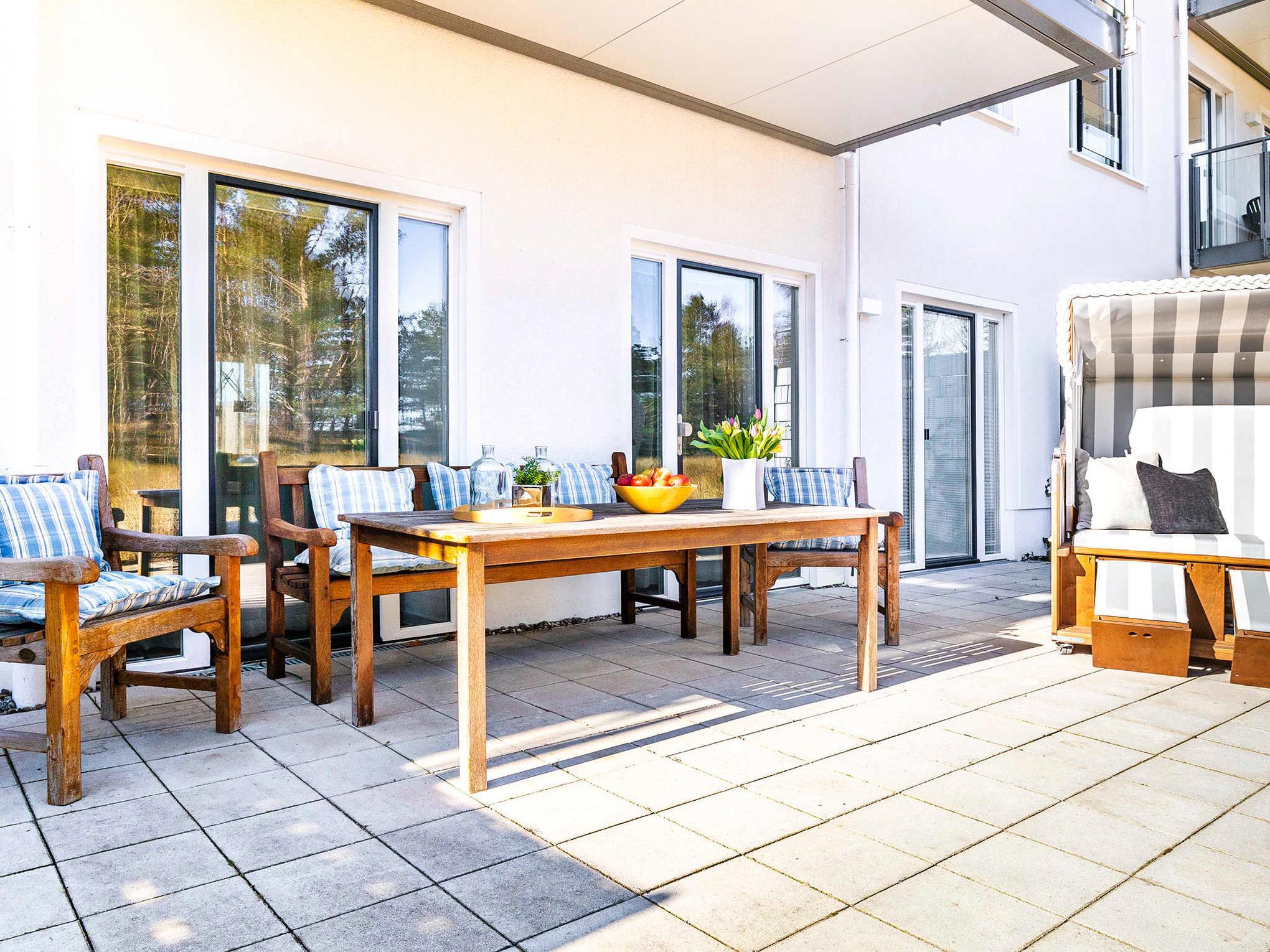 - Terrasse mit Tisch, Sitzbank und 4 Stühlen, Strandkorb, Seeseite