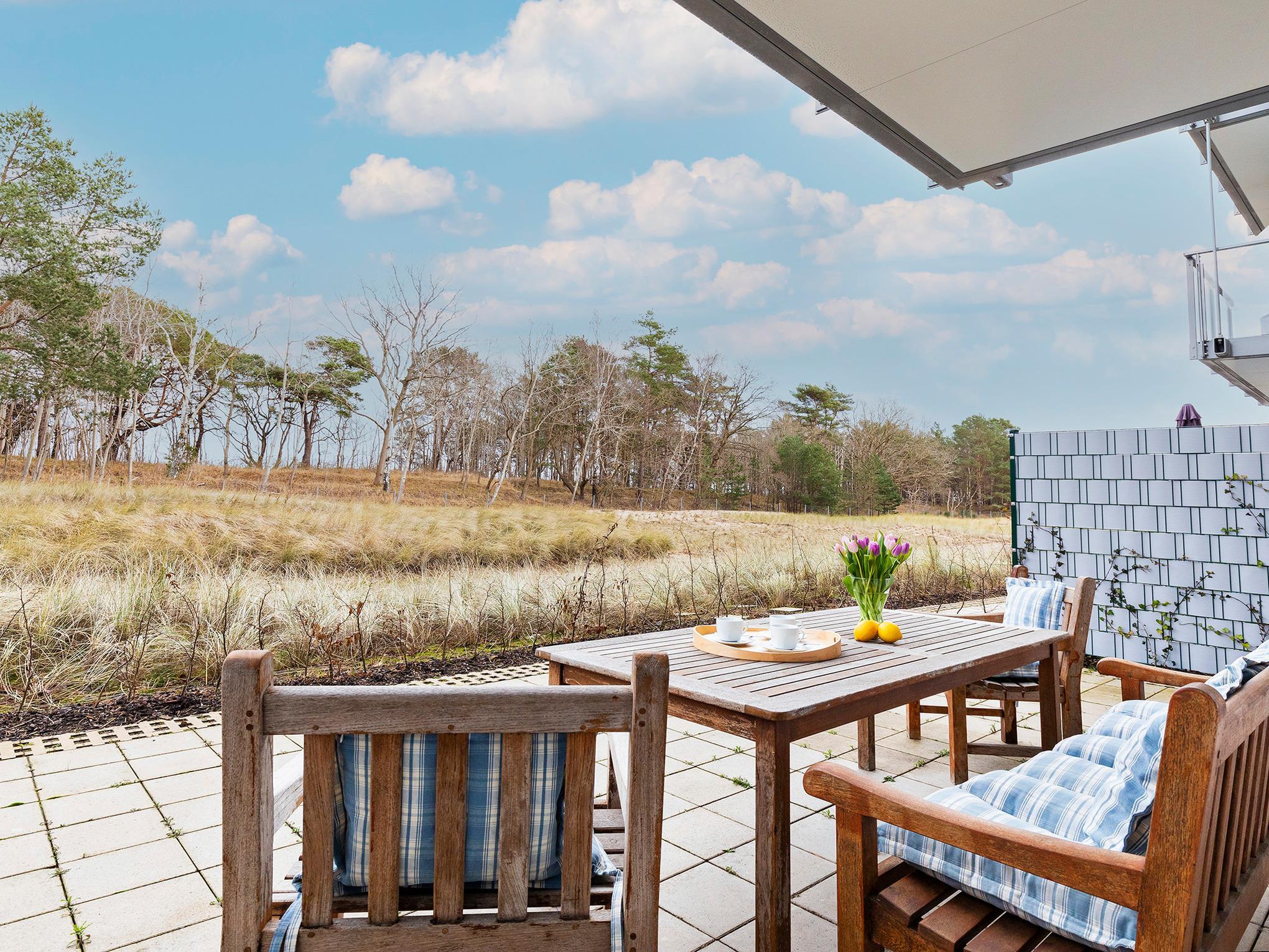 SUNDREAM mit privater Sauna! lädt Sie herzlich ein: Genießen Sie zwei große Terrassen mit Strandkörben - für ein Sonnenbad am Morgen oder am Abend - direkt hinter der Dünenlandschaft, zum feinsandigen Ostseestrand.